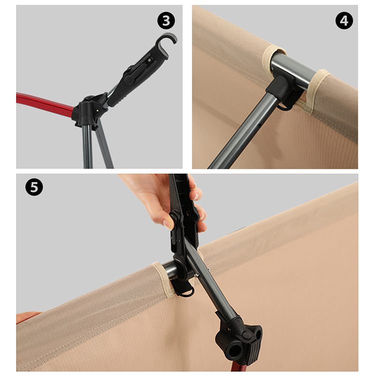 ●2段階高さ調整コット、足を取り外し可能でコットをハイスタイル・ロースタイルの 2つの高さに調節することが可能です。付属のレッグポールを抜き差しすることで。キャンピングベッドはローフォルムで十分な安心感が得られ、ハイフォルムで地面の熱気や冷気を遮断しながら通気性も良くなります。