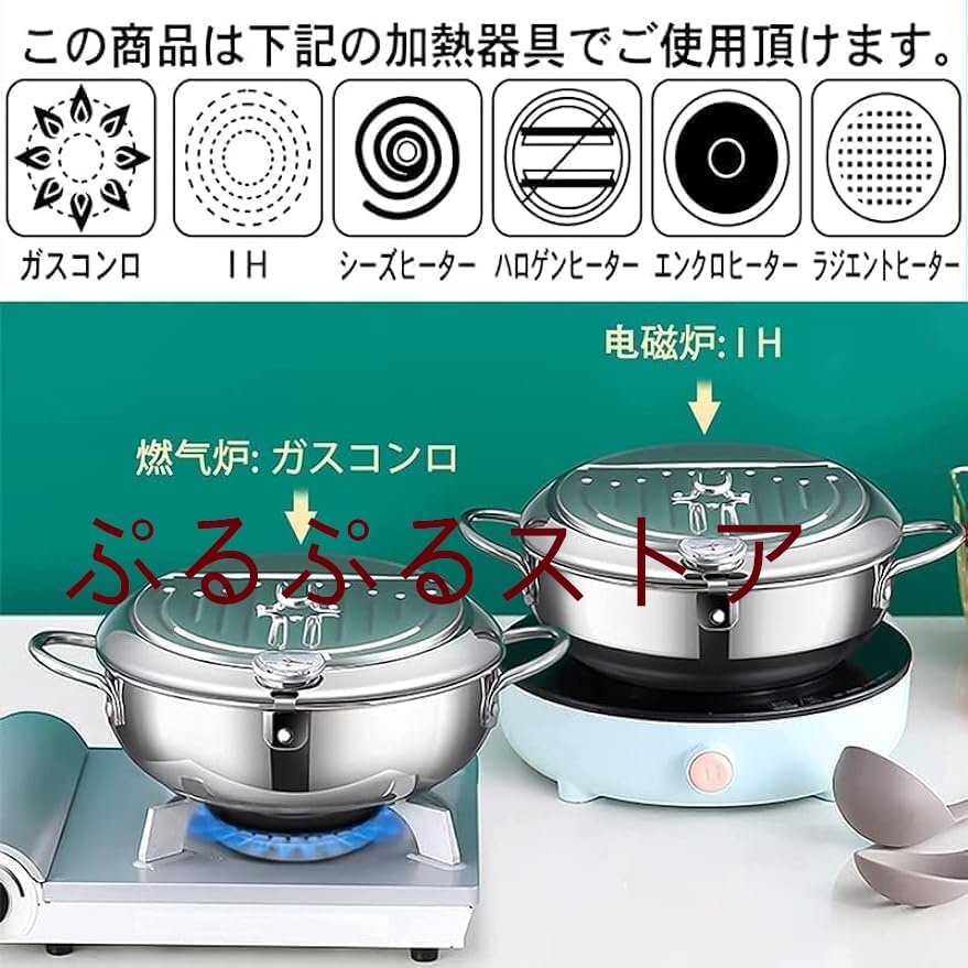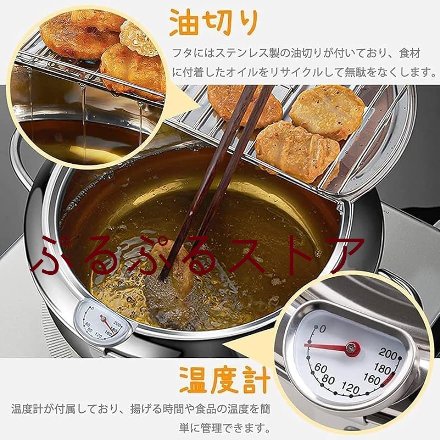 天ぷら鍋 揚げ物 鍋 ステンレス 電磁炉 ガス対応 ふた付き 温度計付き 温度制御 油切りラック付 オールスチール設計 L 24cm