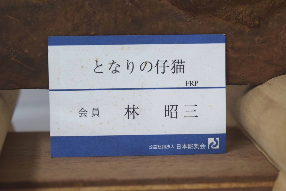 ■ 彫刻家 林昭三 日彫展出品作品「となりの仔猫」衝立 パネル 師:羽下修三、高橋剛 ■