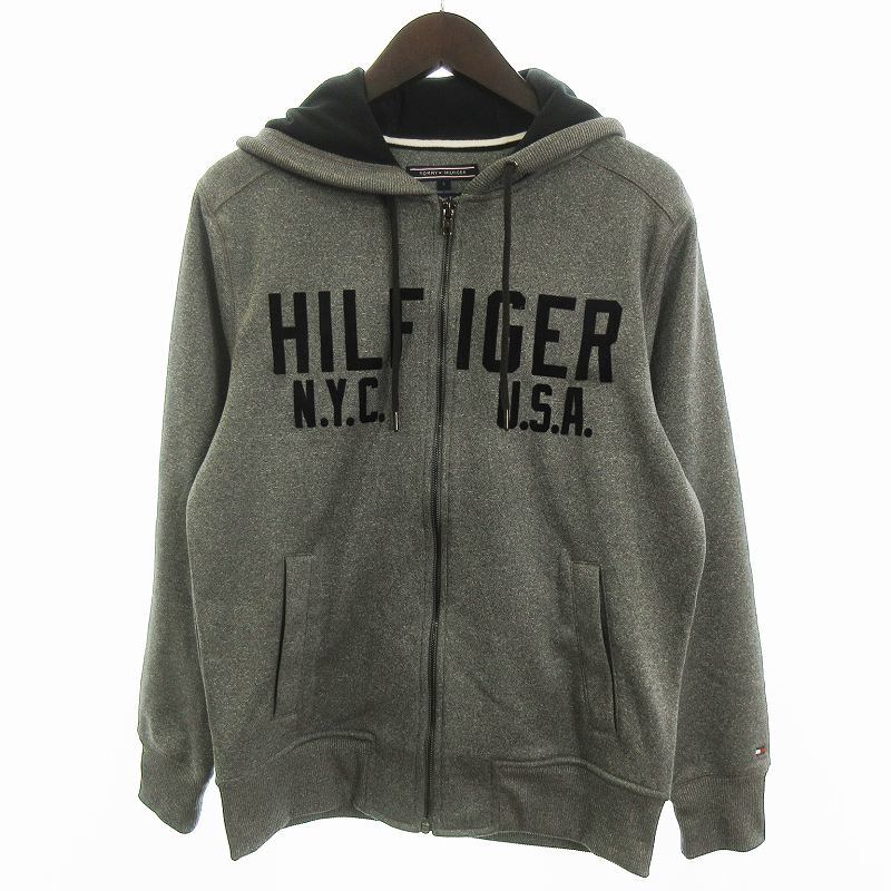 トミーヒルフィガー TOMMY HILFIGER パーカー ジャケット 長袖 ジップアップ フード 裏起毛 ロゴ グレー S メンズ