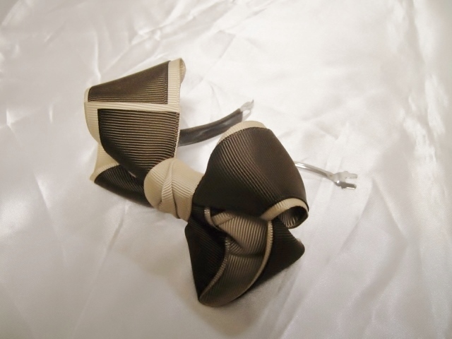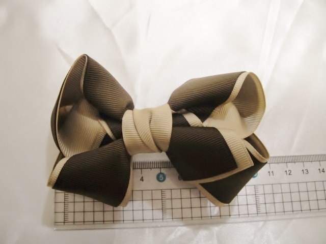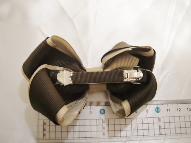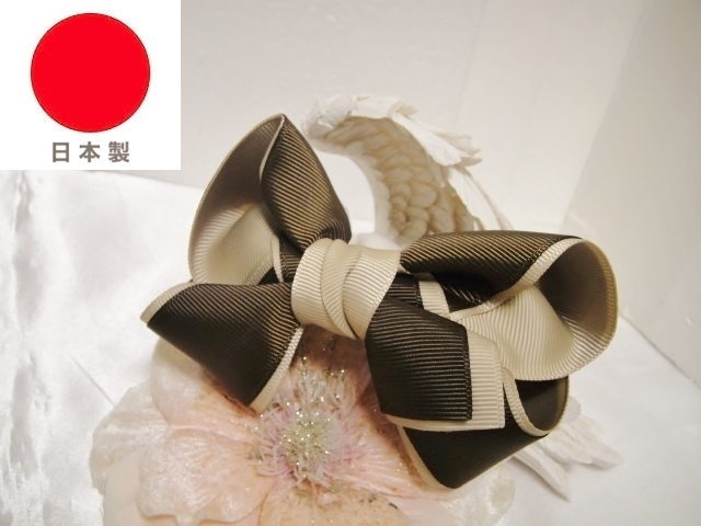 ♪ 新品 バレッタ 日本製『高品質/ロングサイズ/特許取得/しっかりとまるシリコン/グログラン/ダブルリボン/フリル/パールブラウンMIX』♪