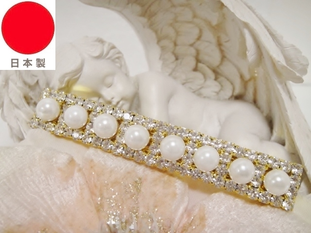 ♪ 新品 バレッタ 日本製『高品質/超ロングサイズ/レクタングル/8連パール&スワロフスキー』♪