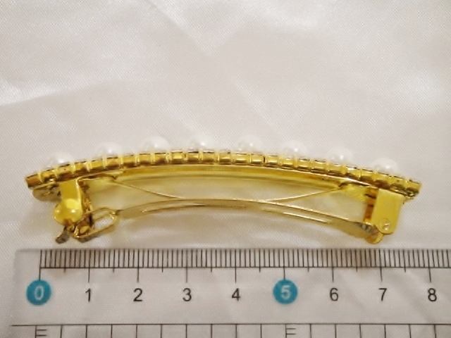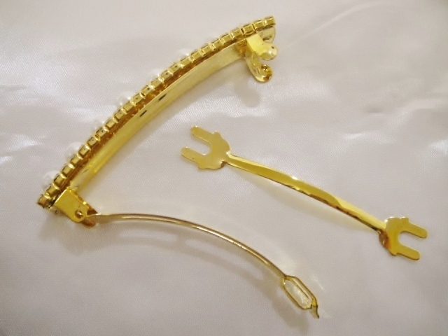 バレッタ本体、クリップ等にメッキ加工が施されておりますが経年劣化による色の変色が生じる場合がございます。