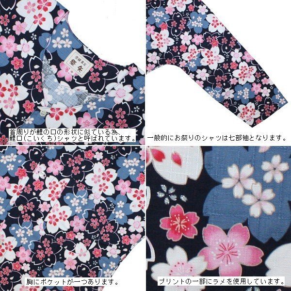 お祭用品/肉襦袢 鯉口シャツ 桜ラメ 216紺 2号(子ども用)