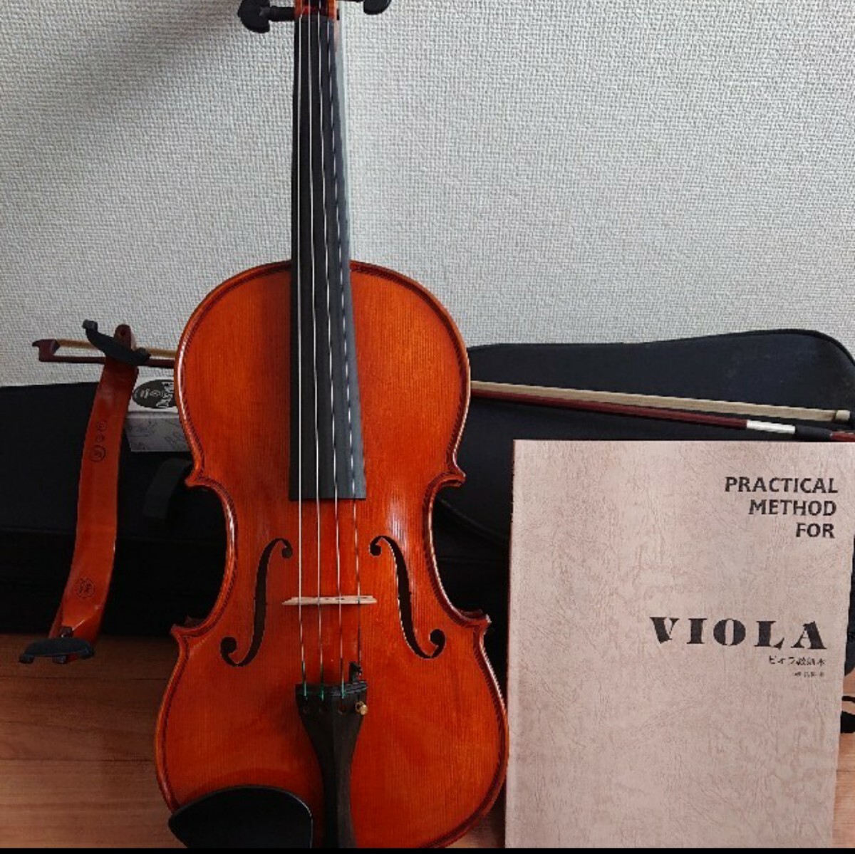肩当て、松ヤニ、ミュート、教則本、弓、ケース一式のセットになります