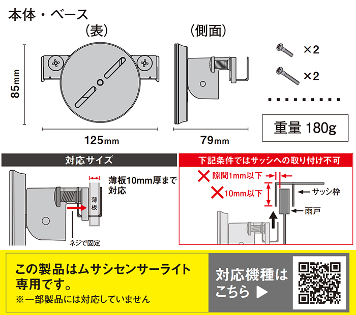 ムサシ/ライテックスのセンサーライト専用のサッシ・薄板用ベース。