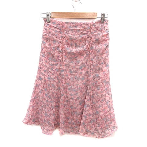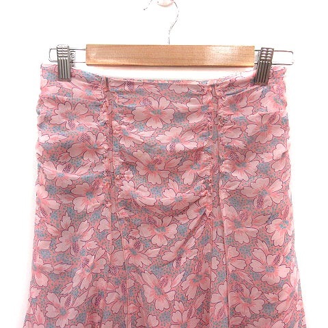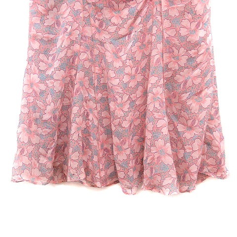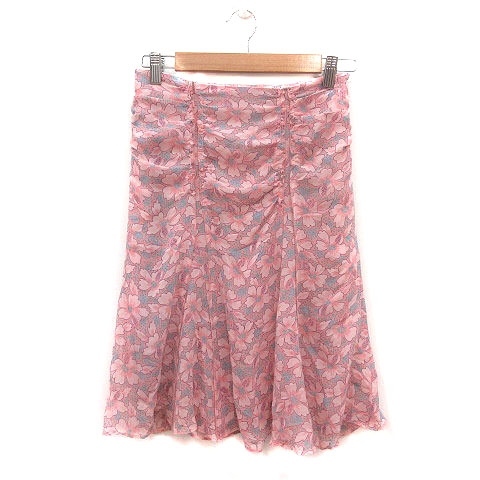 ヒコルヒラー hicole hiller フレアスカート ひざ丈 絹 シルク 花柄 0 ピンク 青 ブルー 紫 パープル /MS レディース