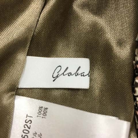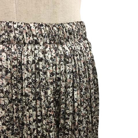 グローバルワーク GLOBAL WORK スカート プリーツ ロング ウエストゴム 総柄 F 茶 白 ブラウン ホワイト レディース