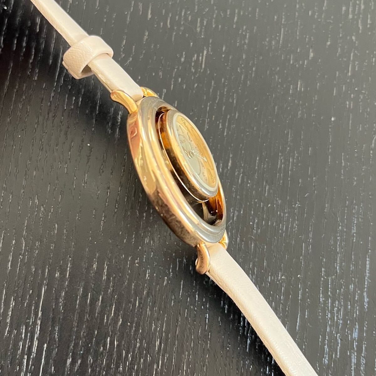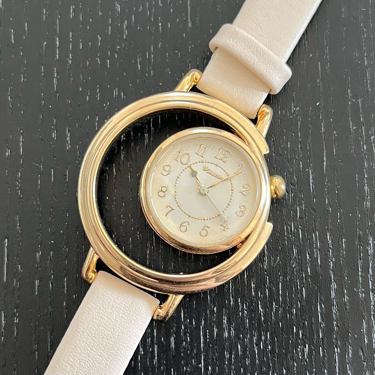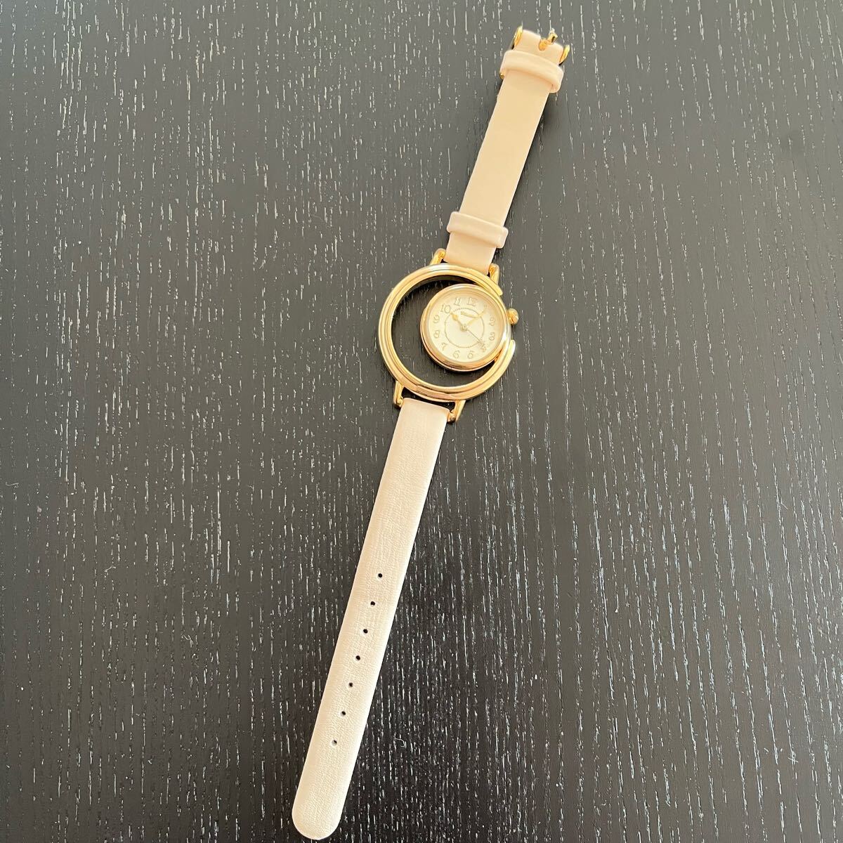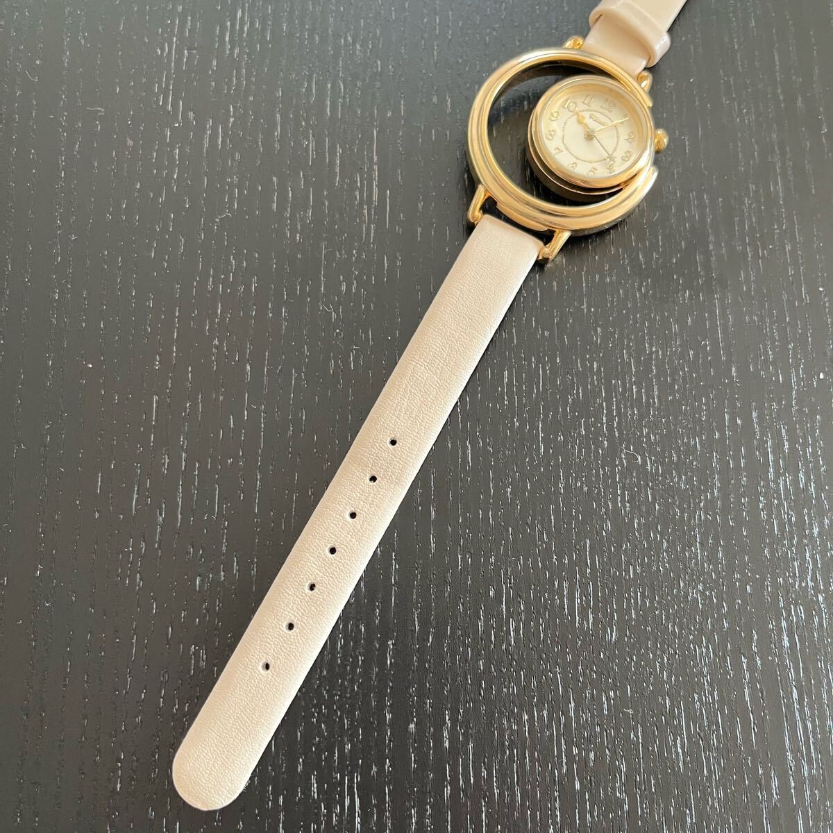 文字盤の空洞部が三日月形になっておりおしゃれな腕時計となっております。