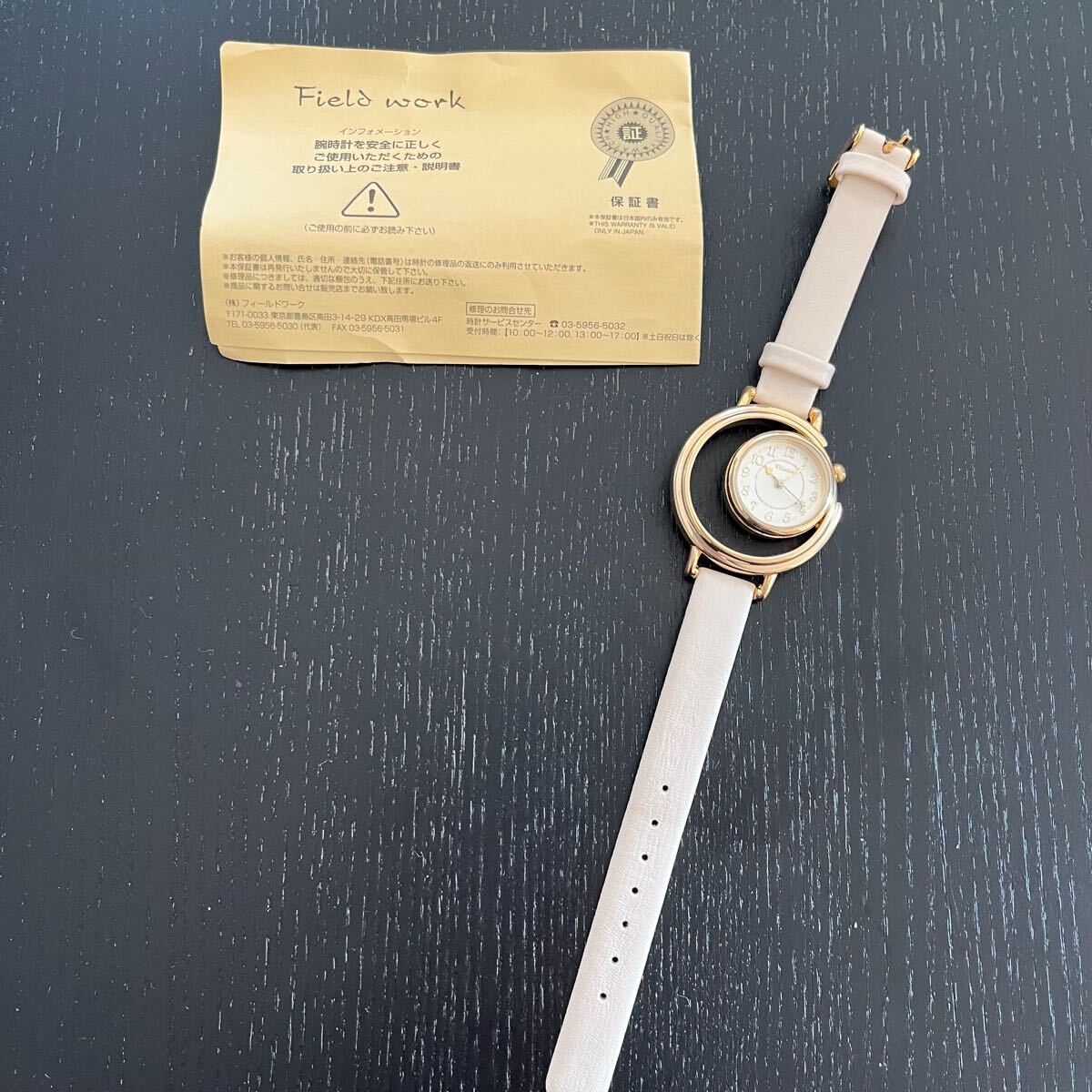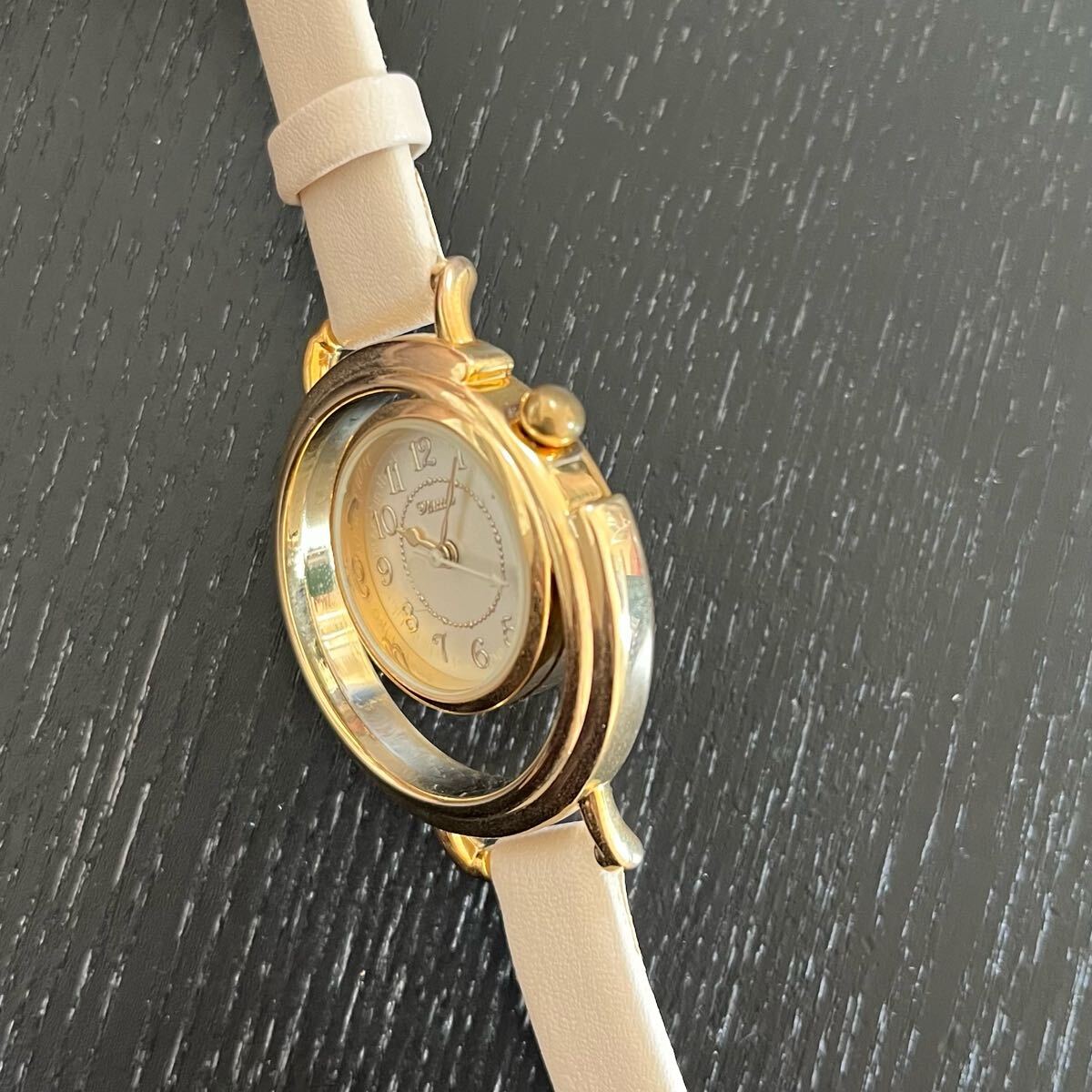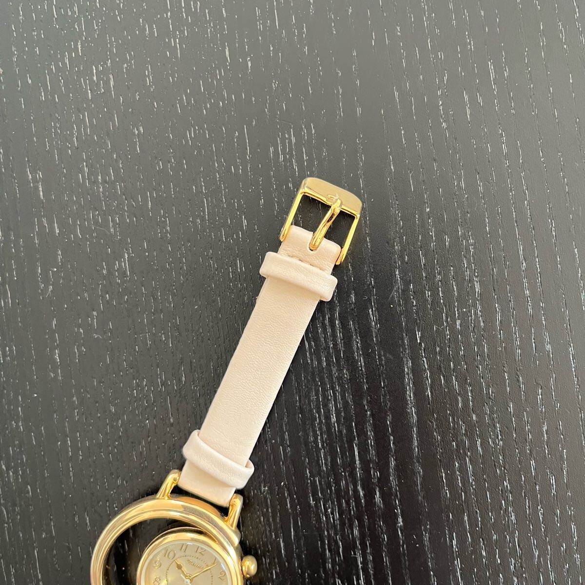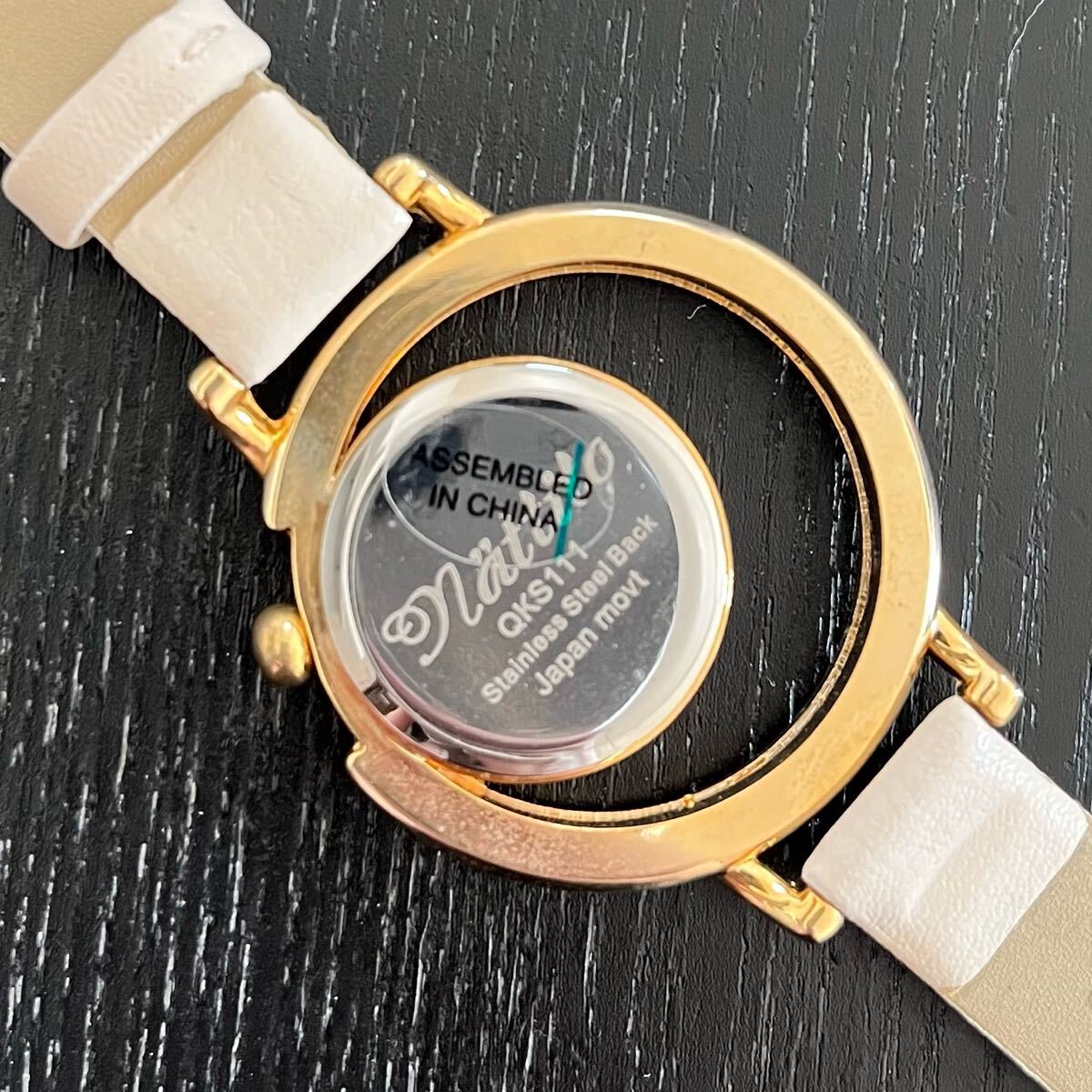 文字盤の空洞部が三日月形になっておりおしゃれな腕時計となっております。