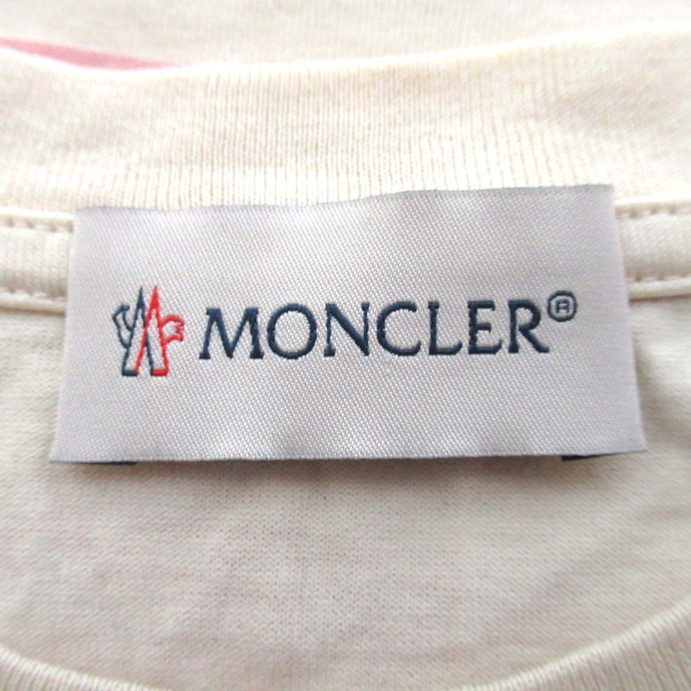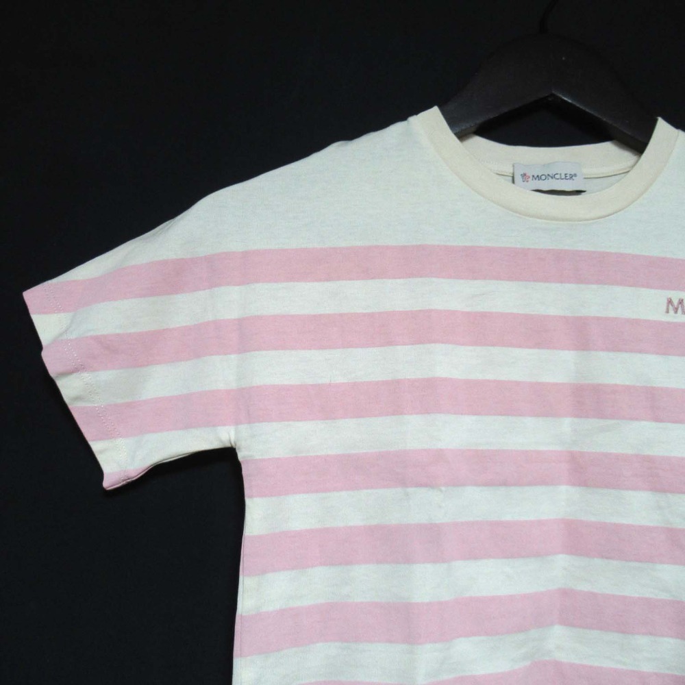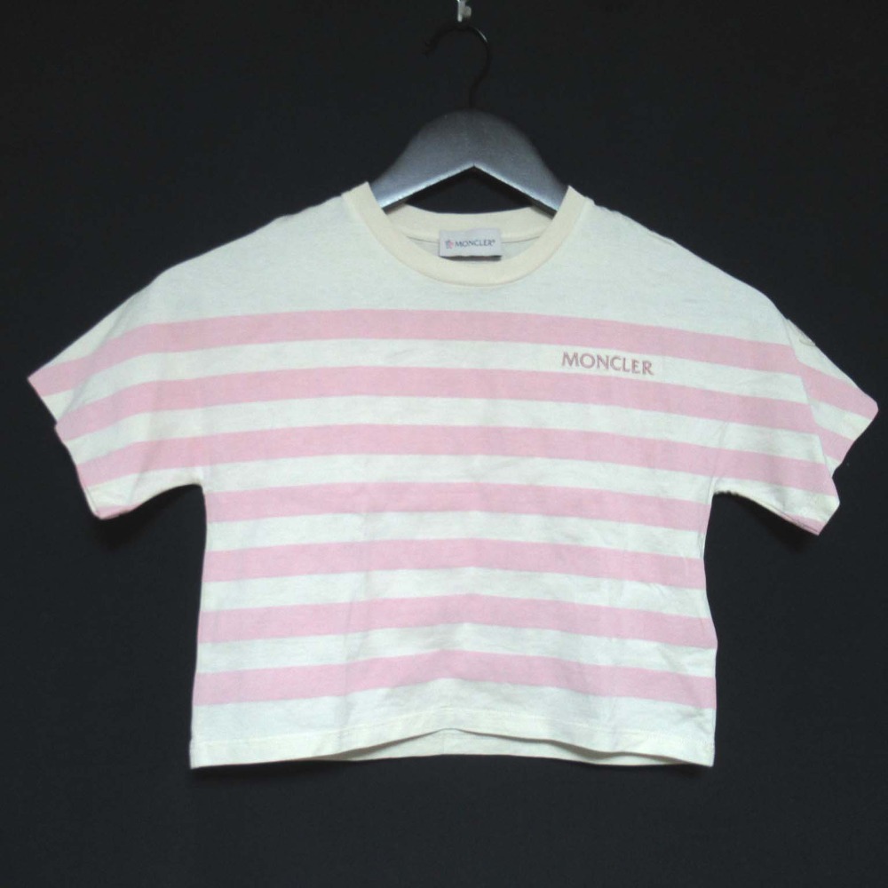 美品 MONCLER モンクレール キッズ ボーダー柄 ロゴ 半袖 クルーネック Tシャツ カットソー 子供服 8anni 130cm ピンク×アイボリー