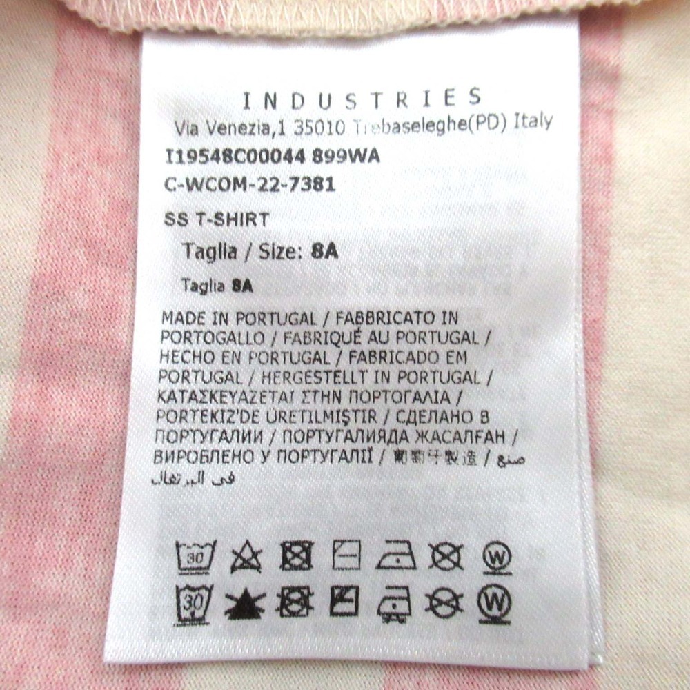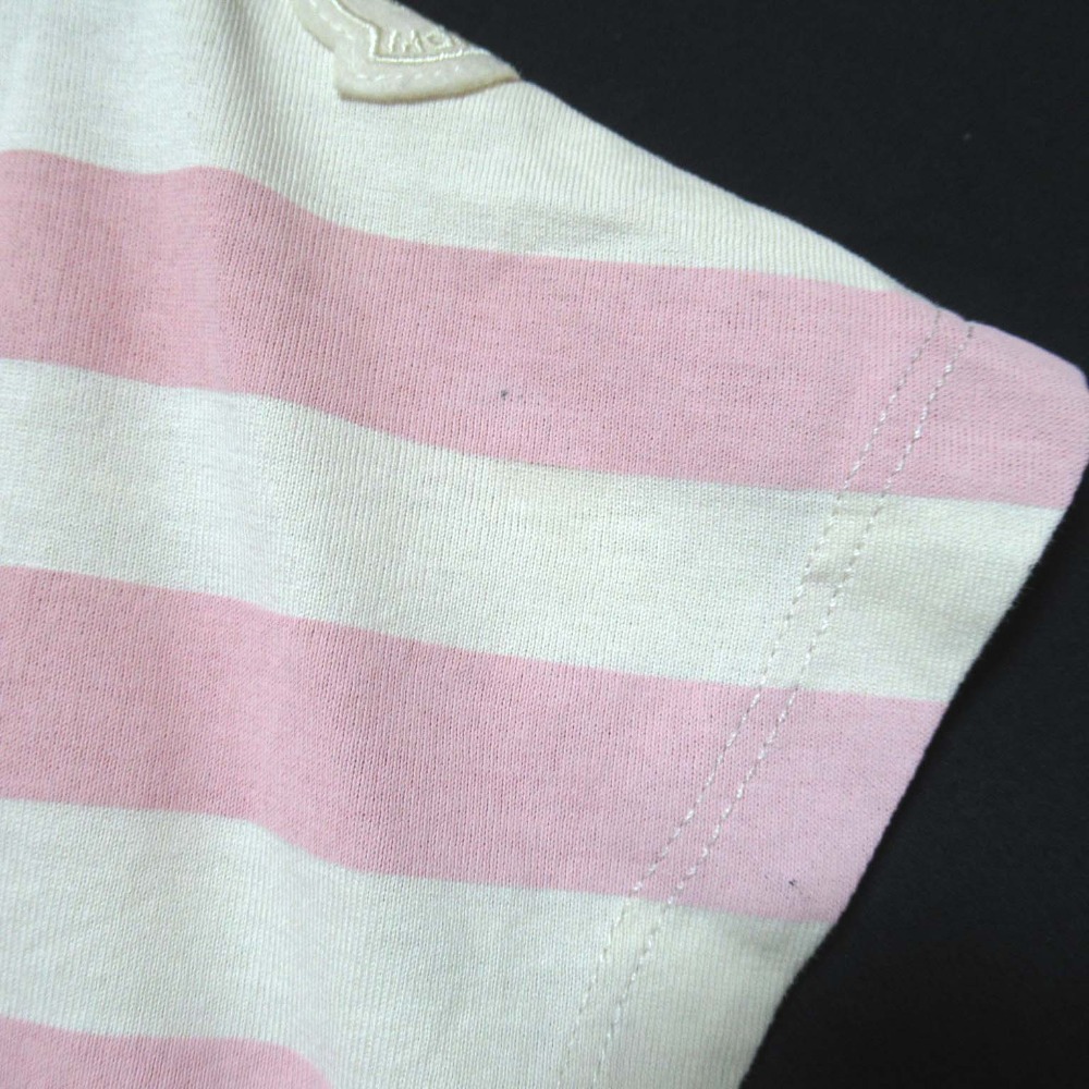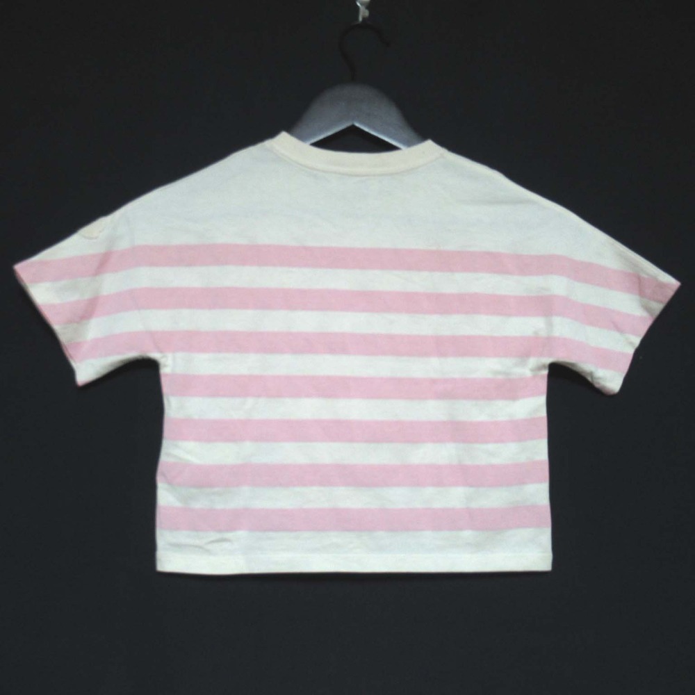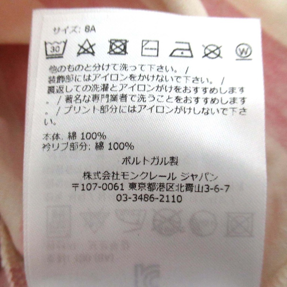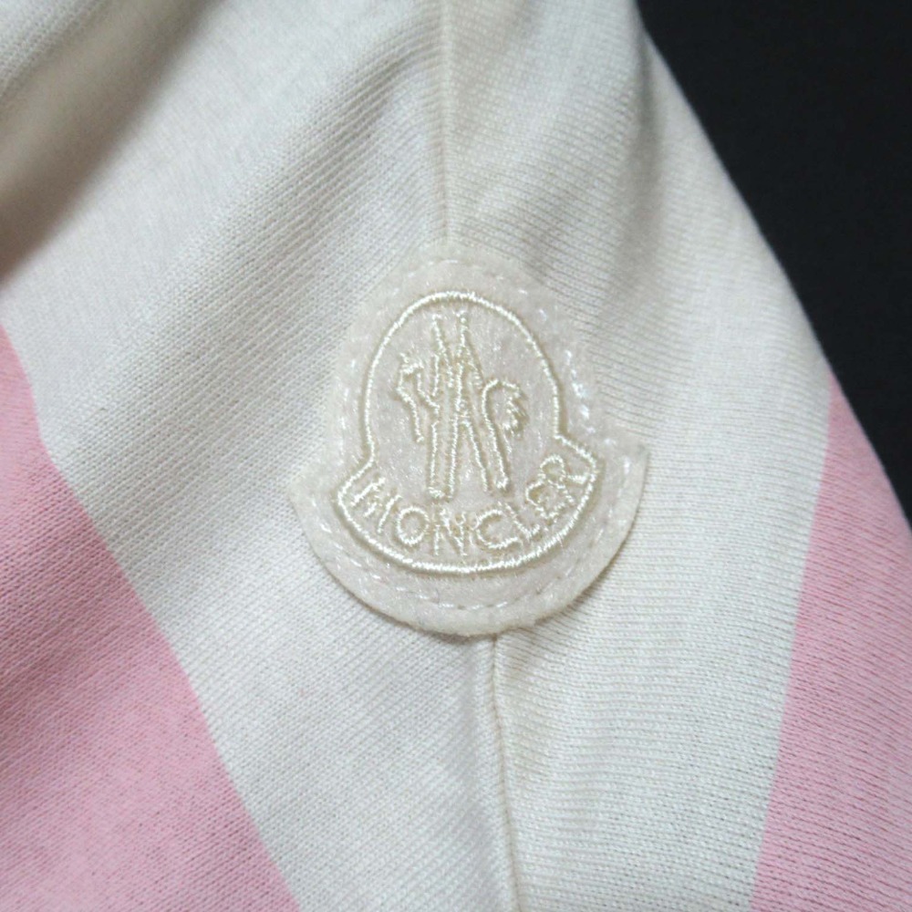 商品名:MONCLER モンクレール キッズ ボーダー柄 ロゴ 半袖 クルーネック Tシャツ カットソー 子供服 8anni 130cm ピンク×アイボリー
