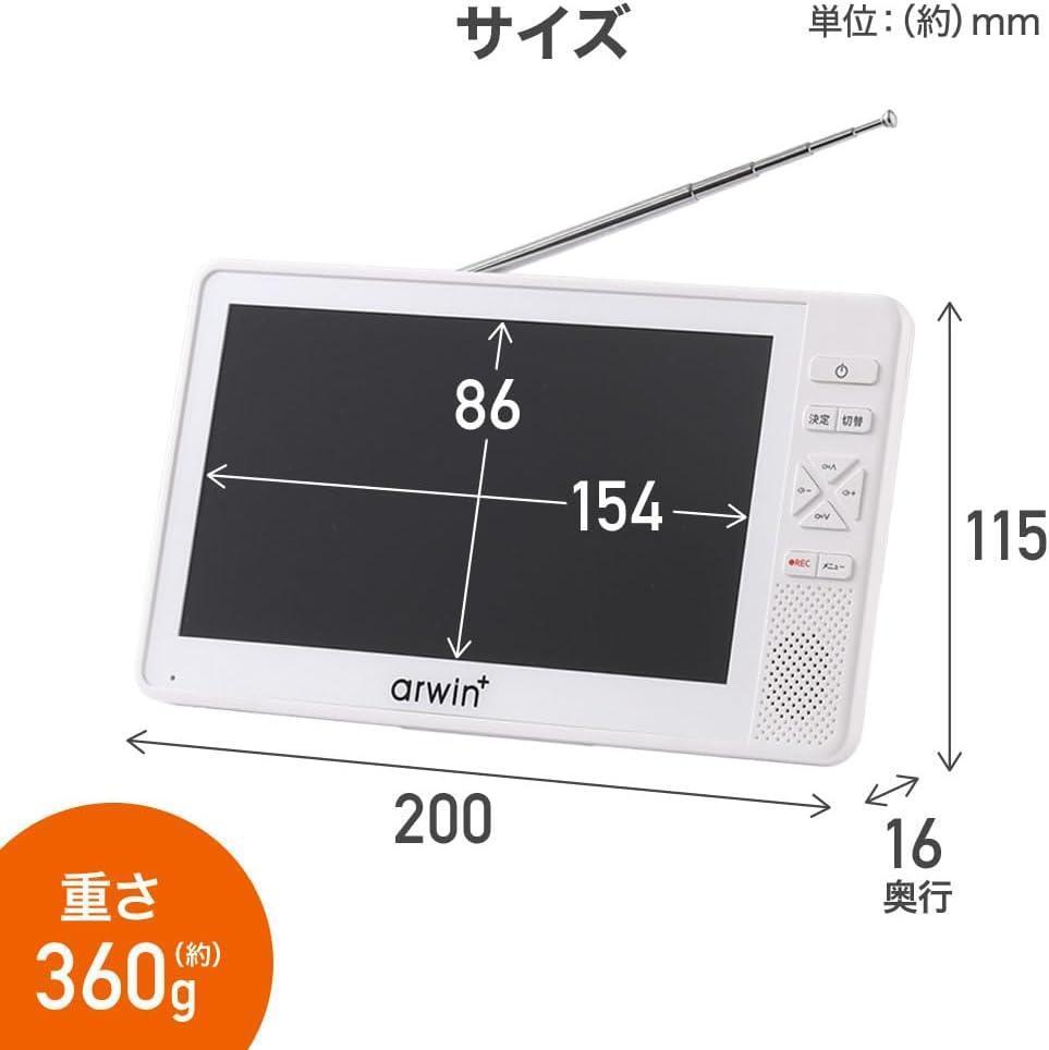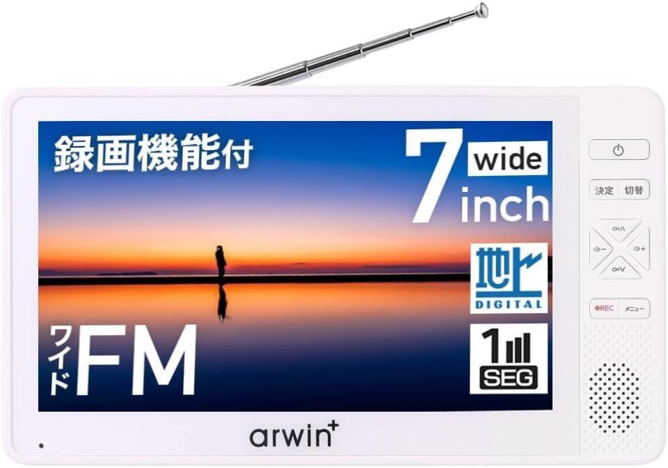 arwin 7インチ 防水フルセグテレビ&FMワイドラジオ ABW-7BKREC録画機能/IPX6防水/充電式タフバッテリー内蔵/防災 非常用/防錆防塵