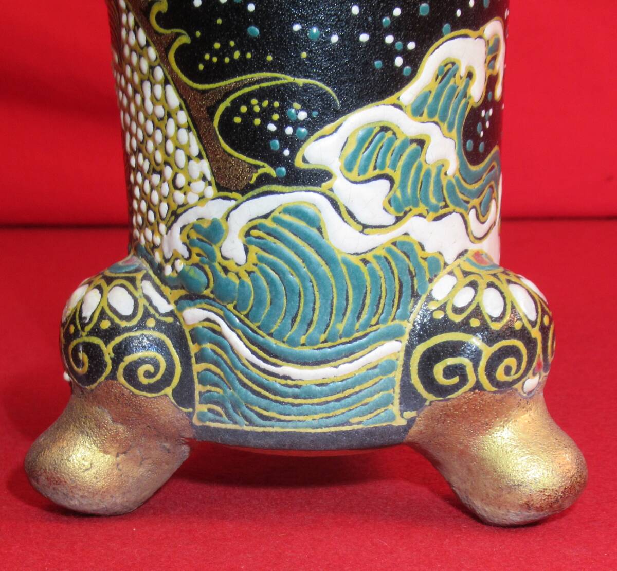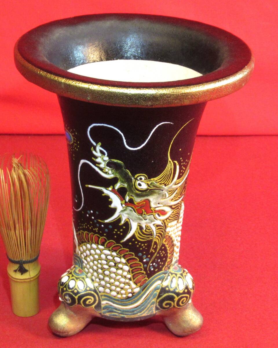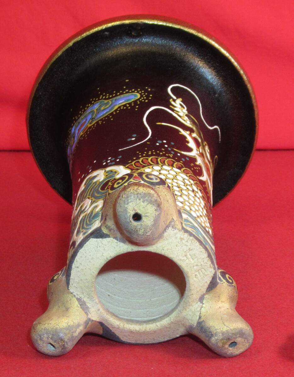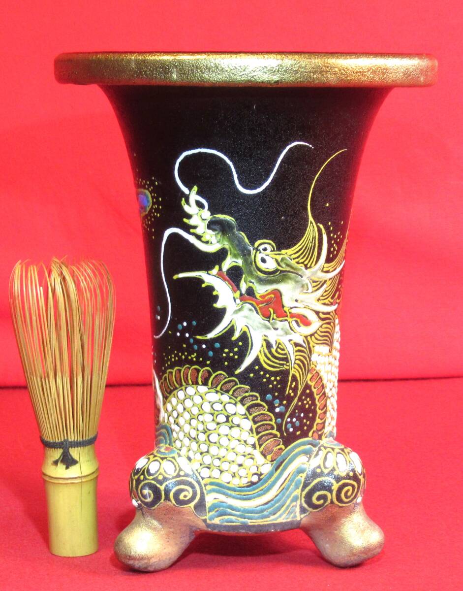 楽焼『色絵大波に雲龍の図蘭鉢「在銘」④』高さ18,3㎝ 春蘭鉢』万年青鉢 盆栽鉢 植木鉢 東洋ラン おもと 山野草鉢 フウラン 楽焼