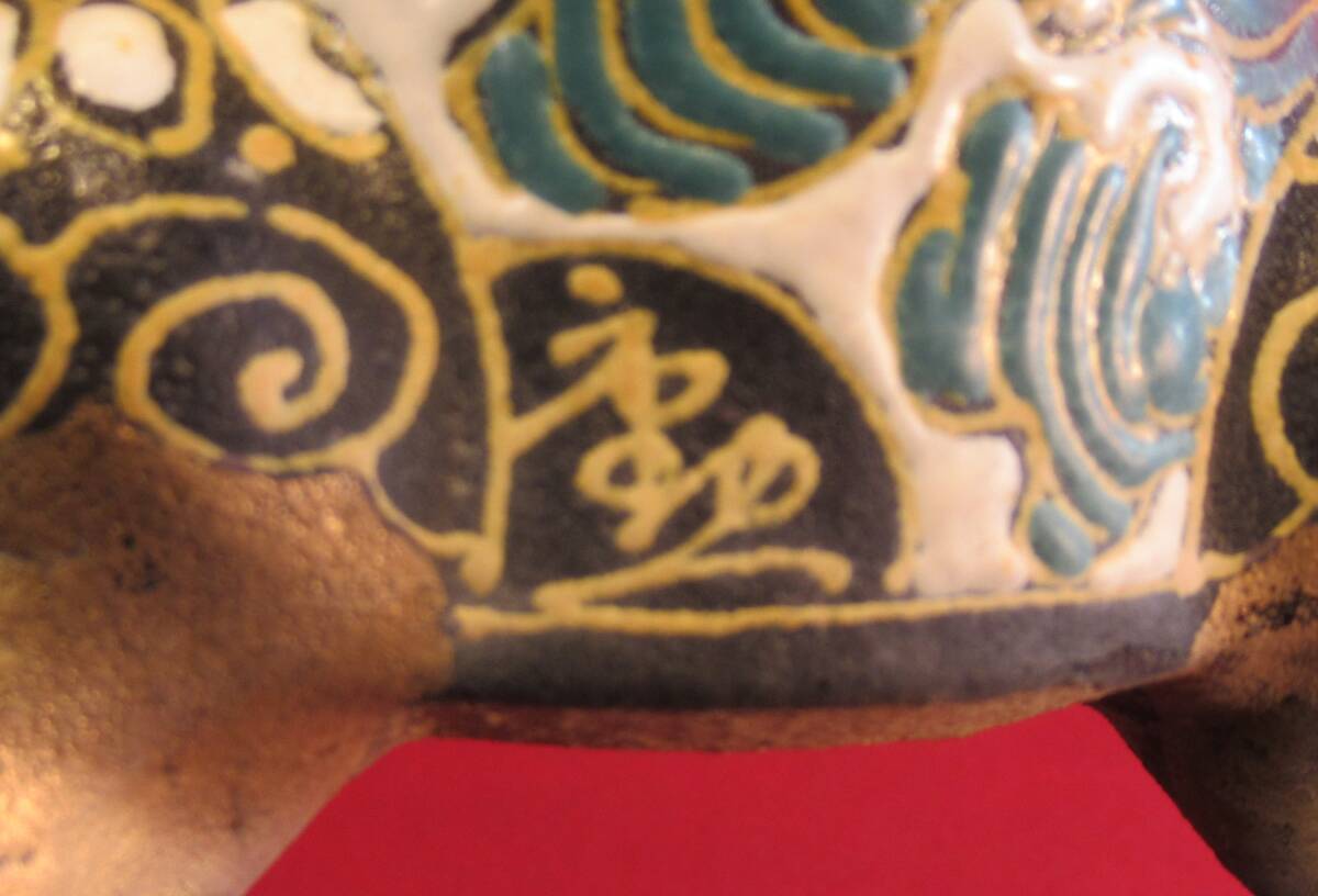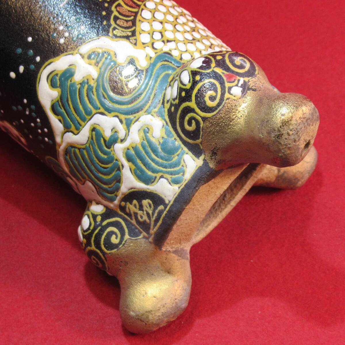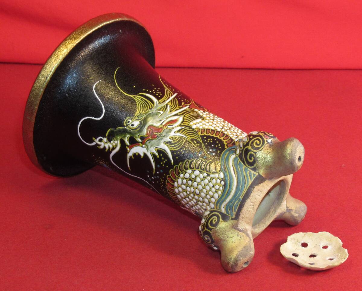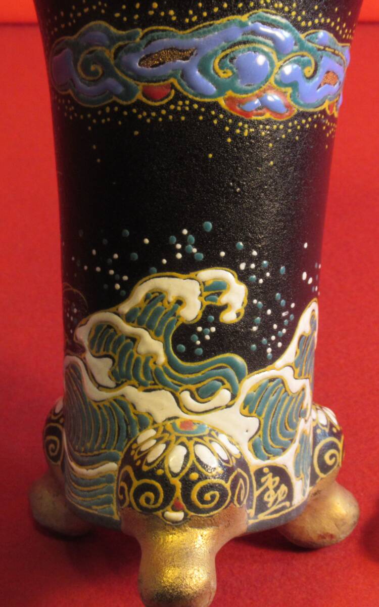 楽焼『色絵大波に雲龍の図蘭鉢「在銘」④』高さ18,3㎝ 春蘭鉢』万年青鉢 盆栽鉢 植木鉢 東洋ラン おもと 山野草鉢 フウラン 楽焼