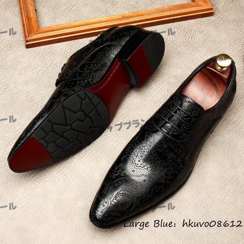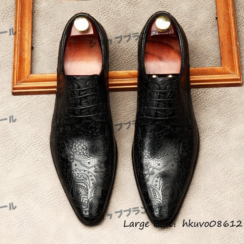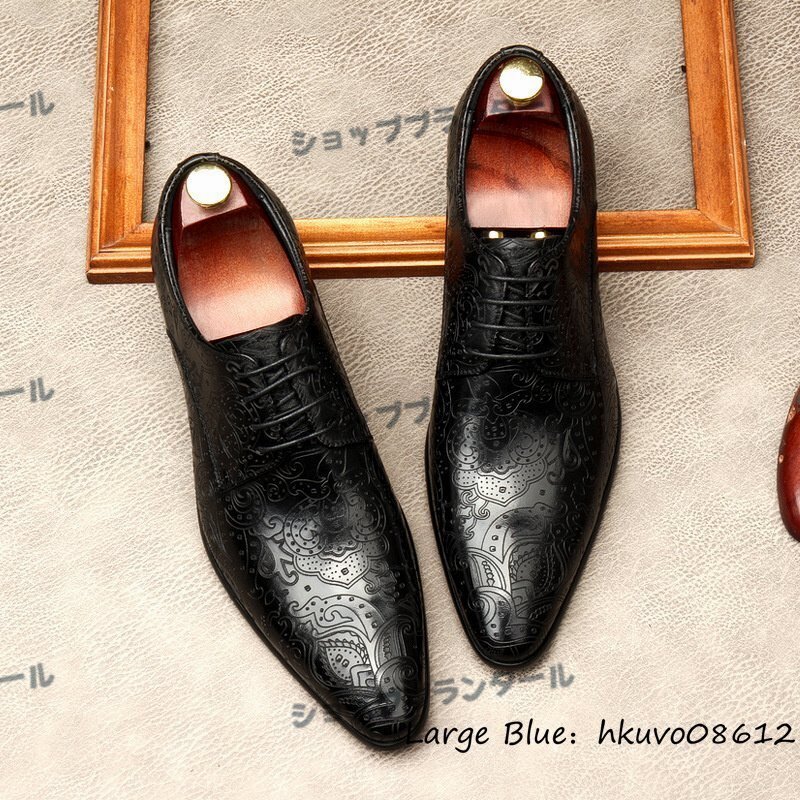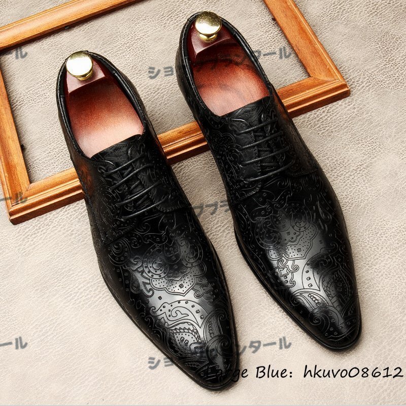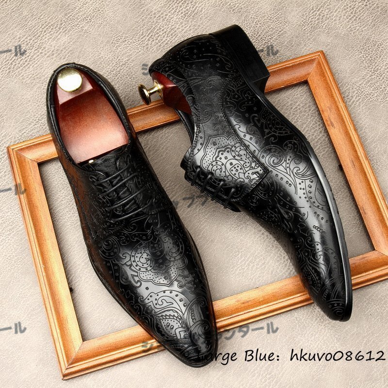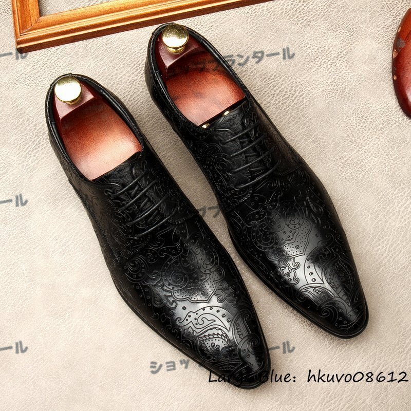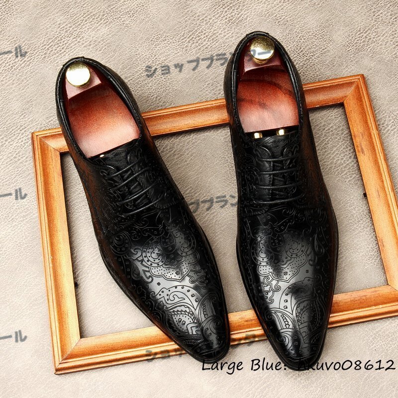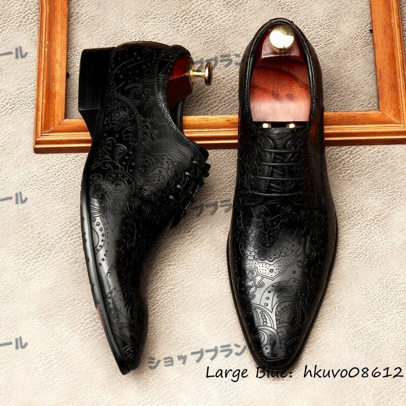 レザーシューズ メンズ 職人手作り 総柄 超希少 牛革 ビジネスシューズ 紳士靴 革靴 フォーマル 宴会 ドレス 27.5cm