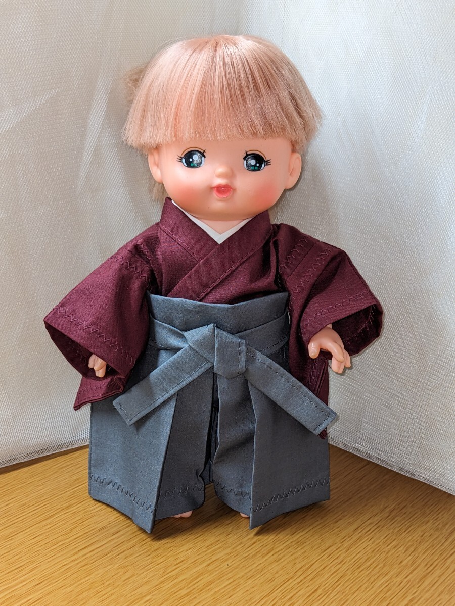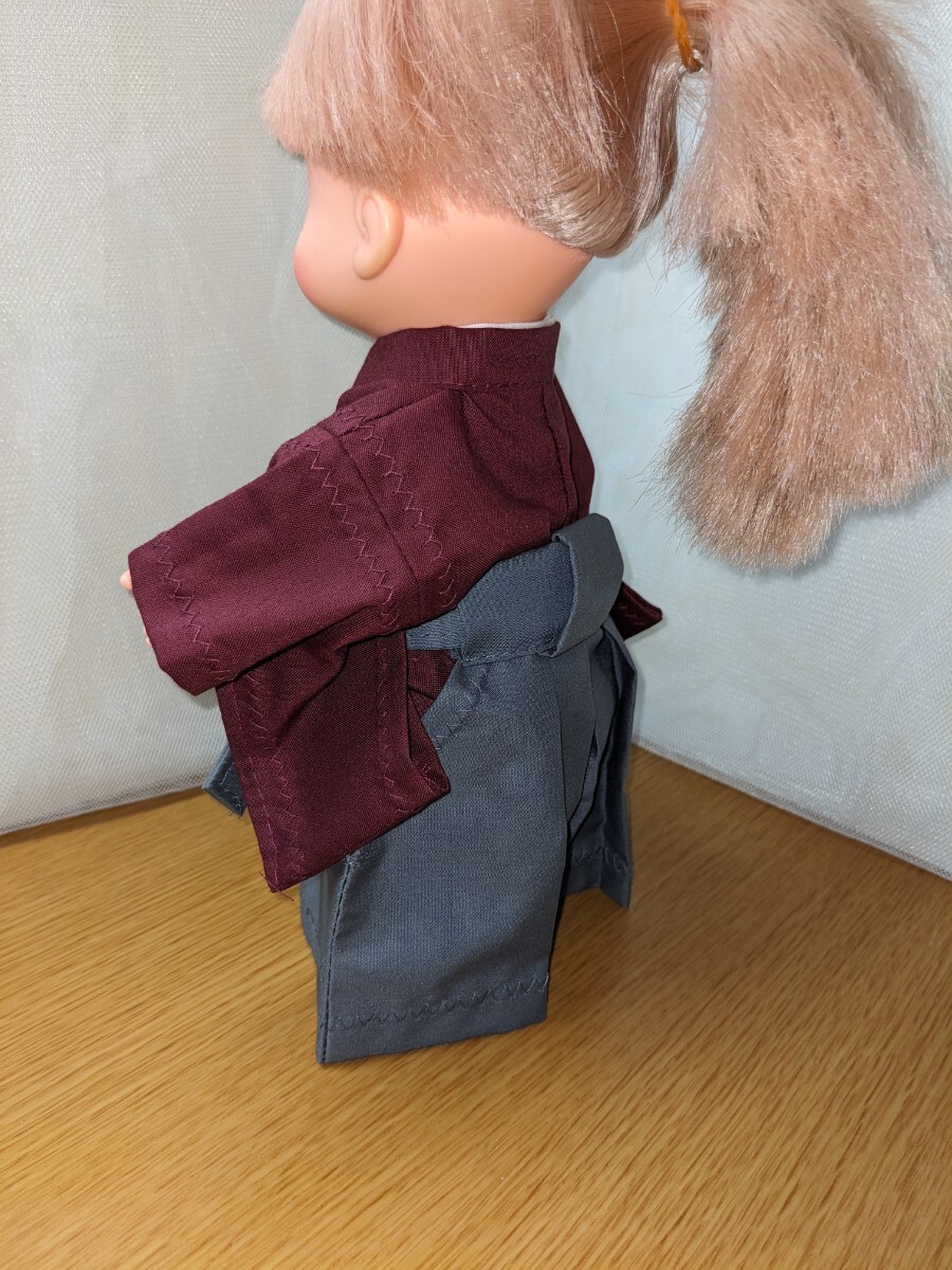 小さいお子さんでも着せ替えできるように着物の合わせにマジックテープを使用してます