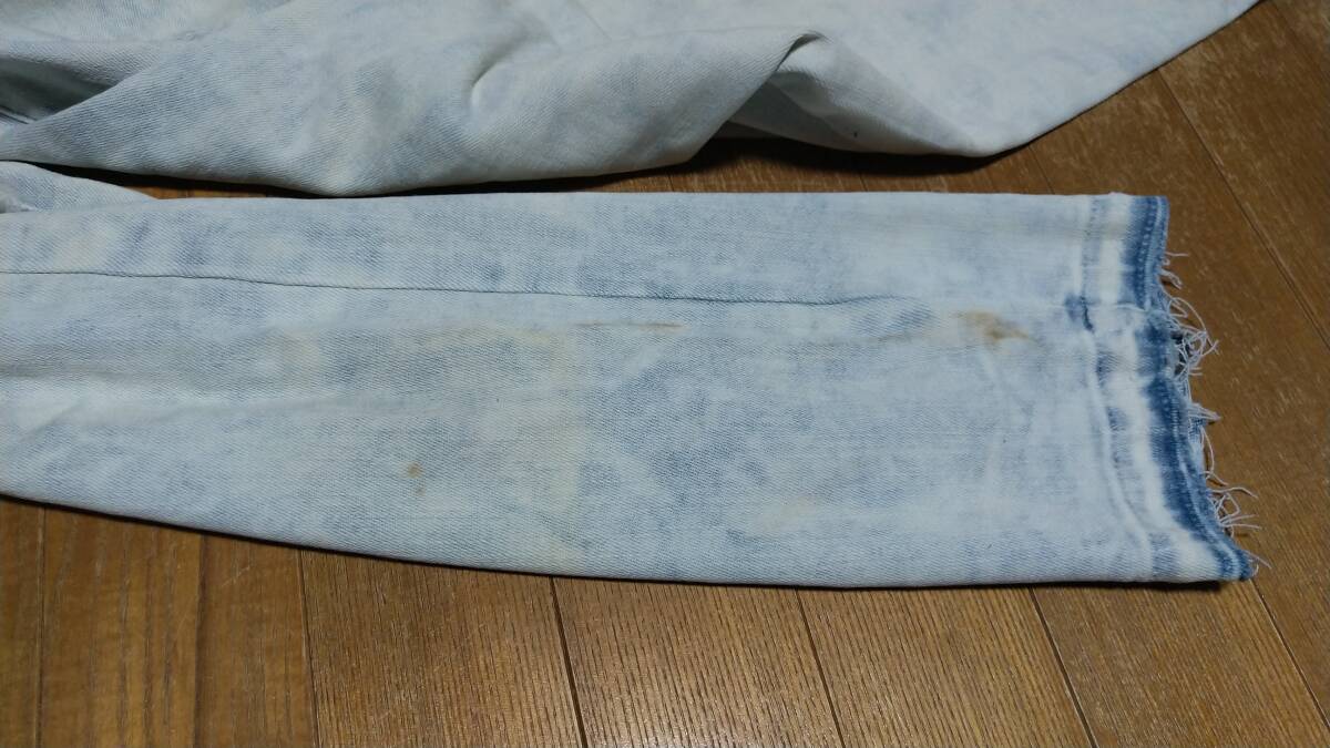 ダメージ加工による穴が有り、古着特有の色落ちや汚れが有ります。
