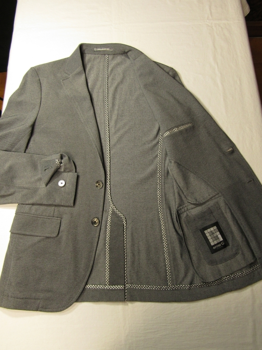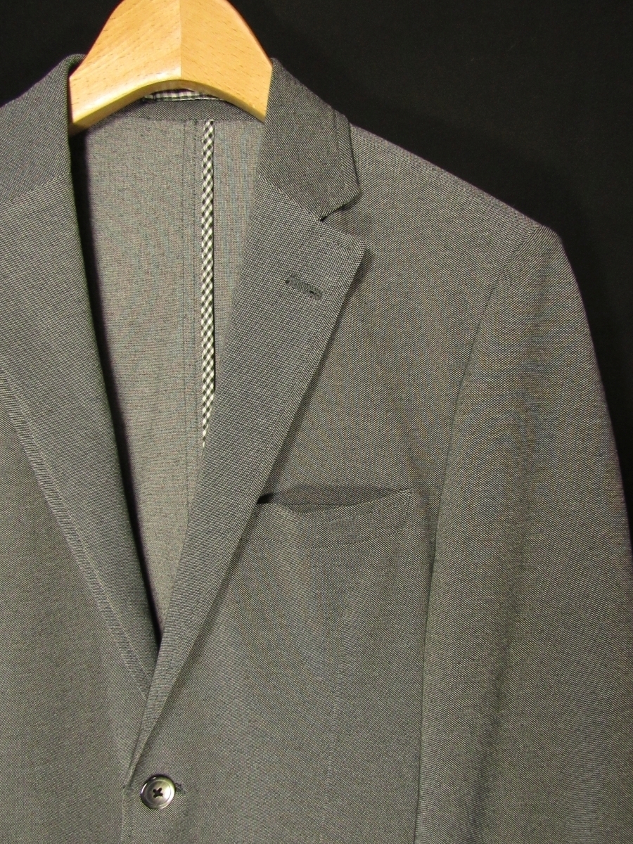 | カジュアル上手な今どき男子に向けた、新しいビジネスウェアを提案している「enter G」 生地はサラリとした薄手のジャージー素材で、春夏向けだと思います。 裏地なし肩パッドなしのアンコン仕様となっており、軽やかなジャケットです。 メンズ・ジャージー・テーラードジャケット / 春夏 シングル2つボタン/センターベント/裏地-なし/肩パッドなし/袖口本切羽1つボタン |