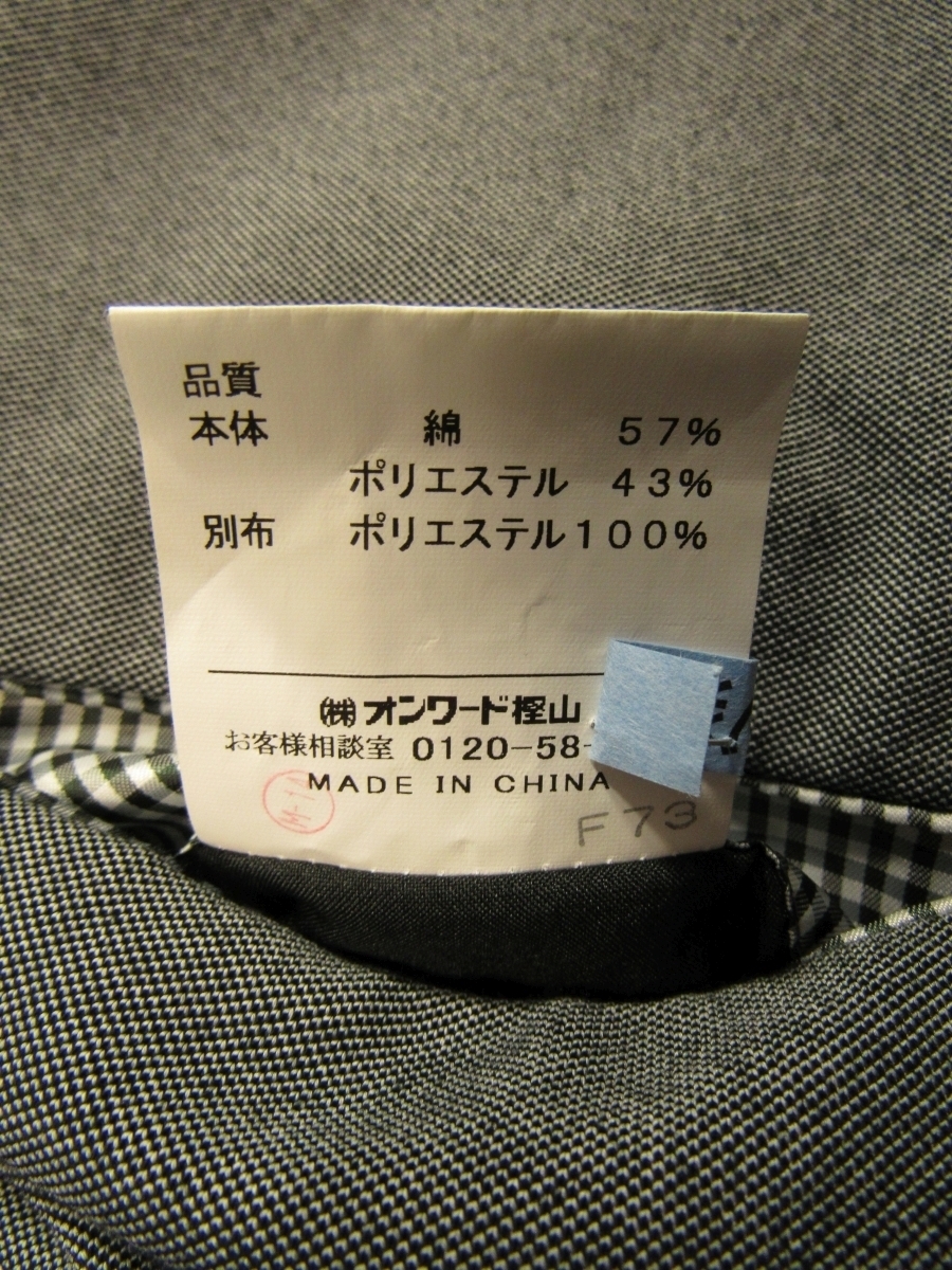 | 本体-綿57% ポリエステル43% / 別布-ポリエステル100% グレー |