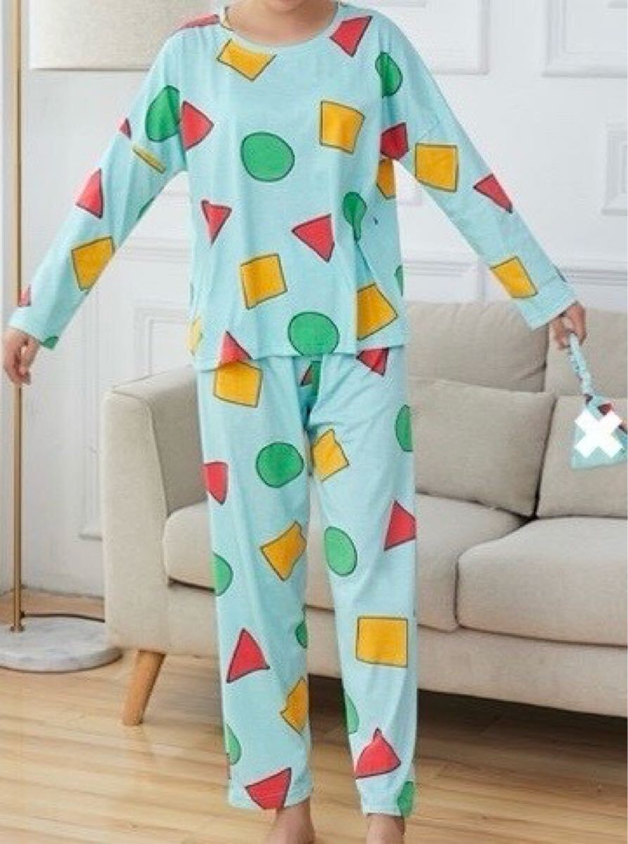 大人気アニメ「クレヨンしんちゃん」劇中でしんちゃんが寝るときに着ている、パジャマと同じ柄のセットアップです。