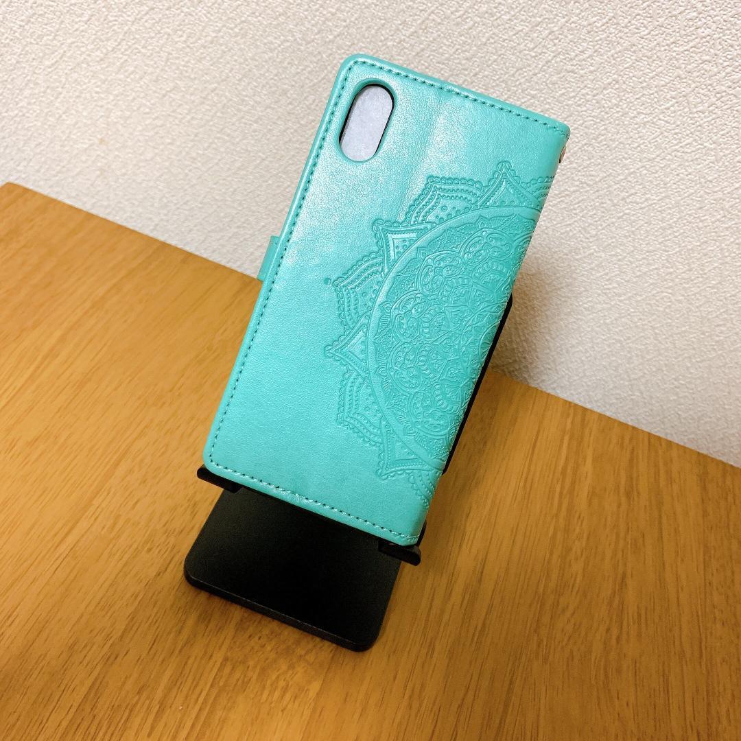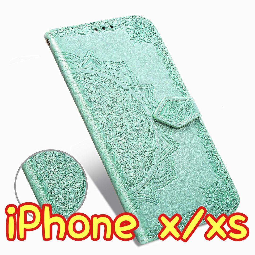 エンボス加工スマホケース 手帳型 iPhone X/XS グリーン