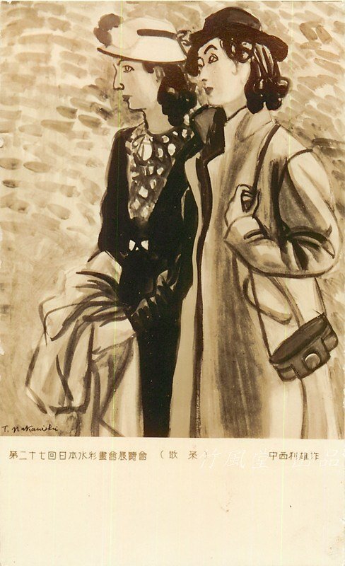 9613【絵葉書】◆ 美術展覧会 散策 中西利雄