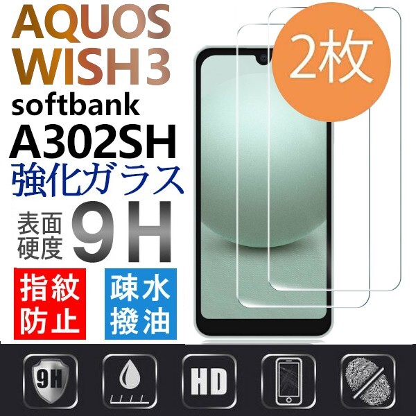 2枚組 AQUOS wish3 softbank A302SH ガラスフィルム Aquoswish3 アクオス シャープウィッシュスリー ソフトバンク 平面保護 破損保障あり