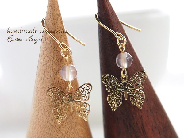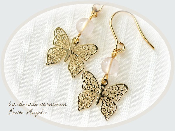 ◇◇+angelo+天然石ピンクカルセドニーと蝶々のピアス(p-020)G 春 チタン 樹脂 イヤリング