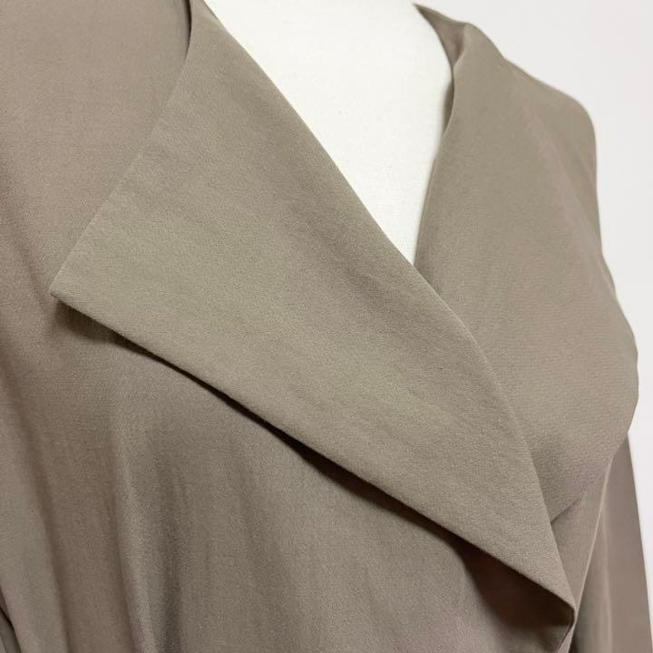 ベルト付ノーカラーロングジャケット