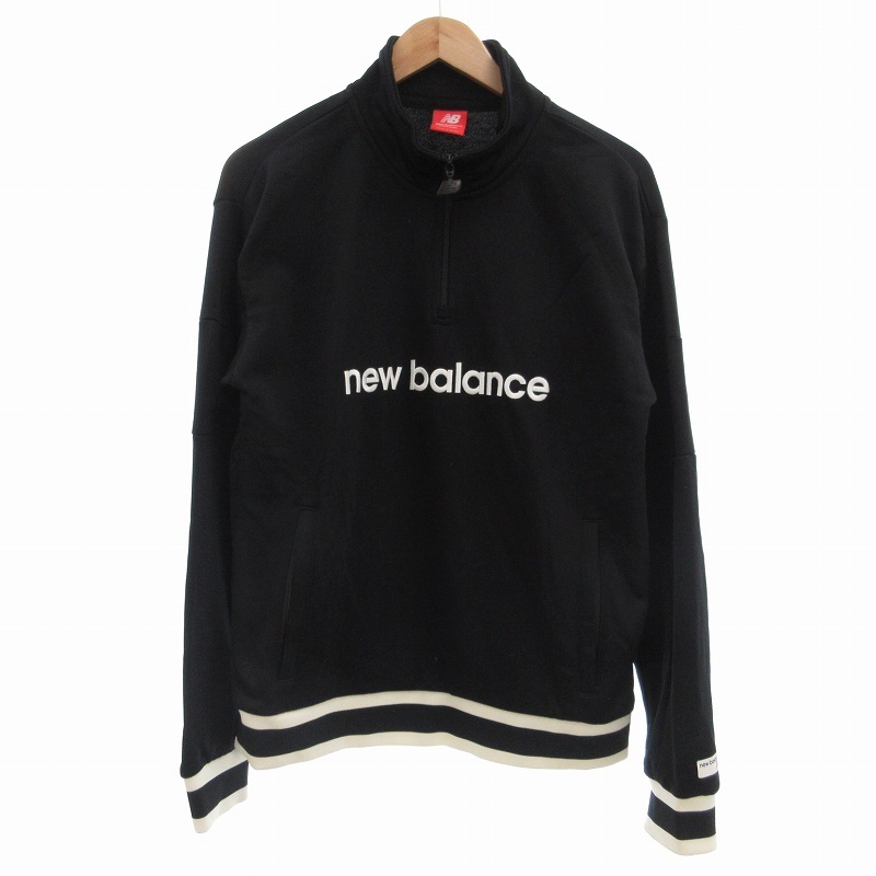 ニューバランス NEW BALANCE アスレチックスセレクトスタジアムトラックプルオーバー ハーフジップ ロゴ刺繍 M 黒 ブラック /UO