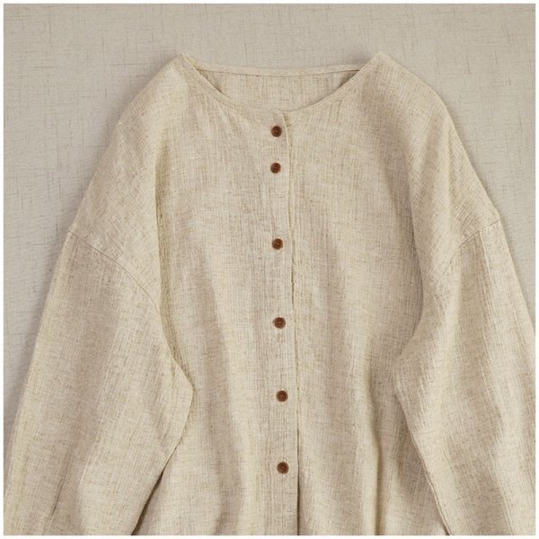 m カーディガン 前開け チュニック トップス 羽織物 アウター 純色 ゆったり フリーサイズ ワイシャツ 麻混 大人可愛 ナチュラル 亜麻色
