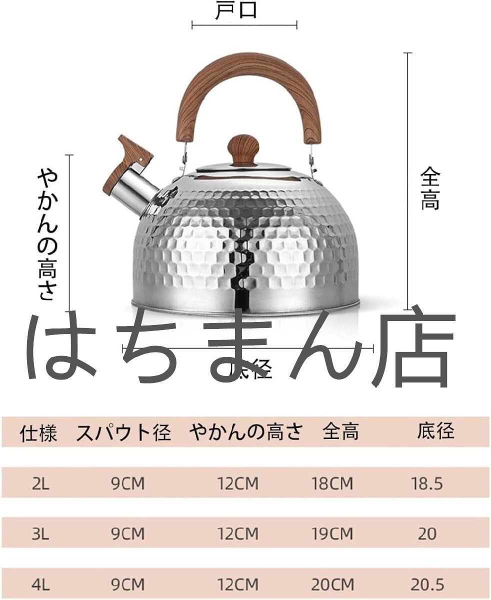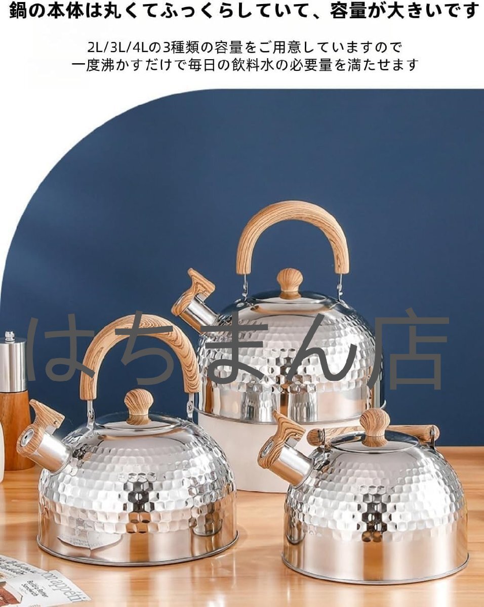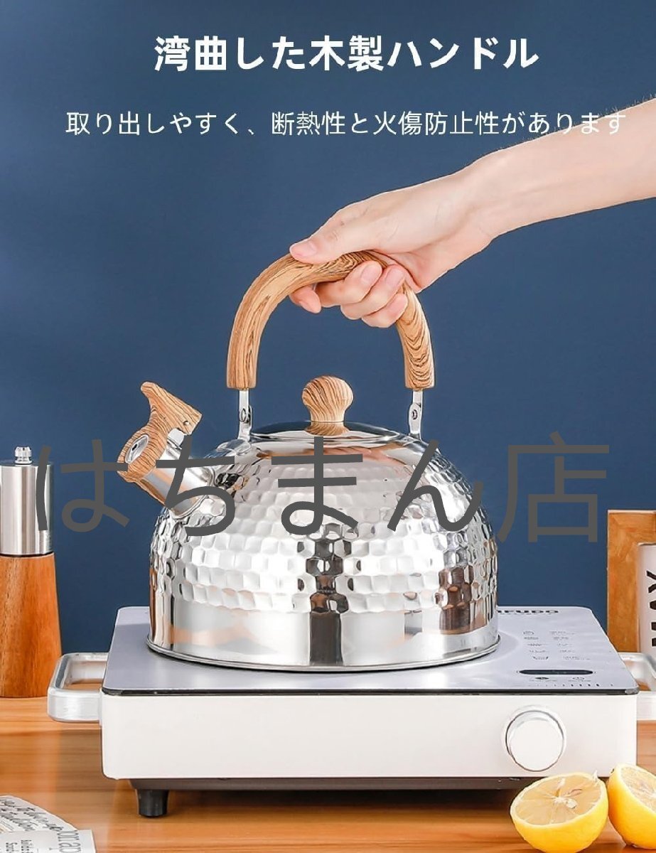 やかん 笛吹きケットル 口笛ケトル ケトル 4L 大容量 ガス火IHオール熱源対応 ケトル おしゃれ 木製ハンドル付き 広口沸騰水 (2L)