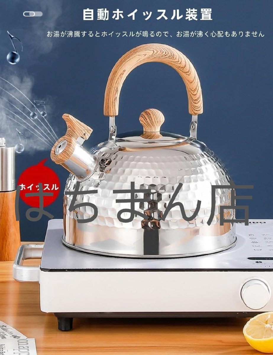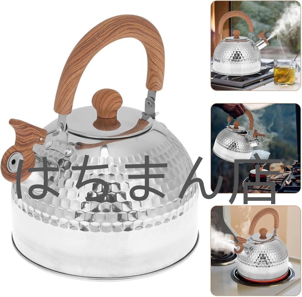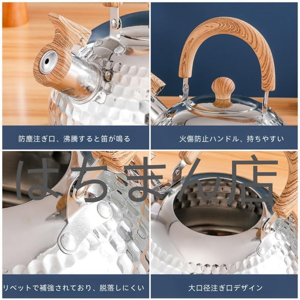 やかん 笛吹きケットル 口笛ケトル ケトル 4L 大容量 ガス火IHオール熱源対応 ケトル おしゃれ 木製ハンドル付き 広口沸騰水 (2L)