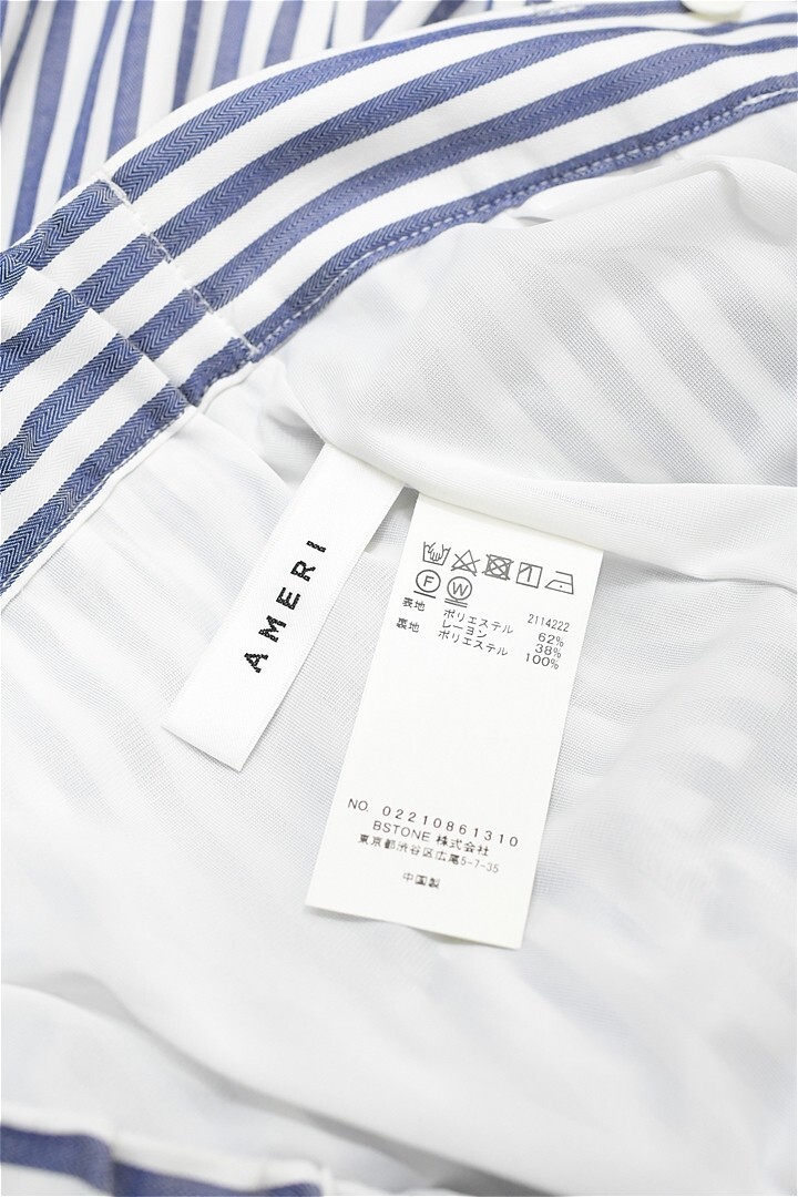 W142/美品 AMERI アメリ STRIPE SLIM STRAIGHT PANTS ストレートパンツ スラックス ストライプ ウエストゴム M 青 白 春夏