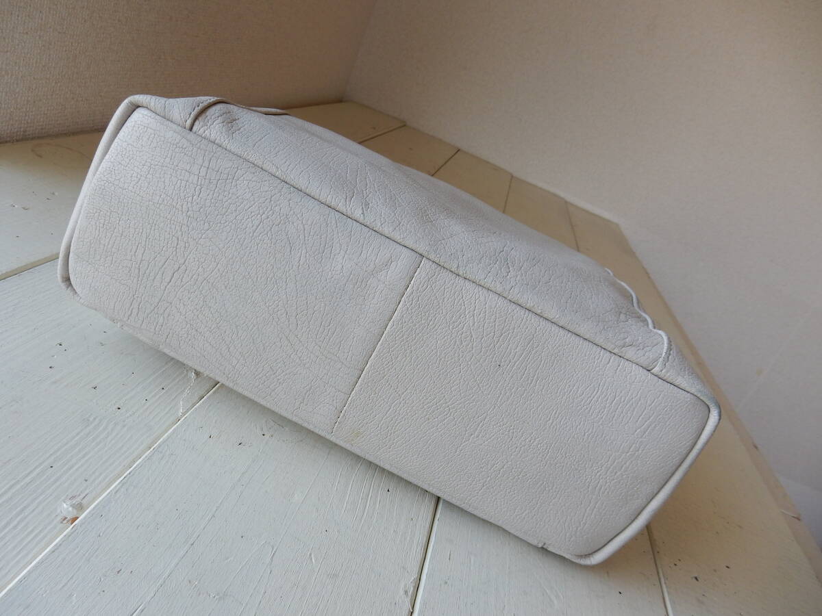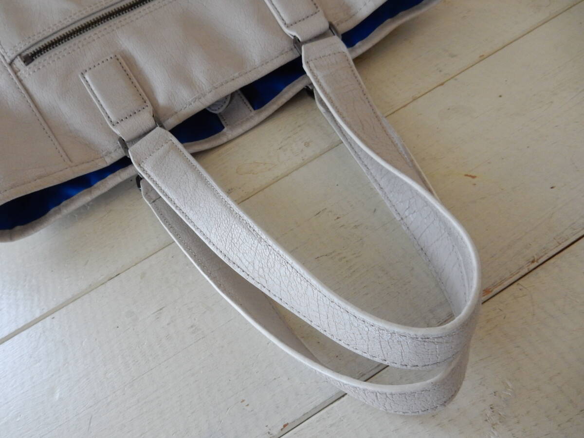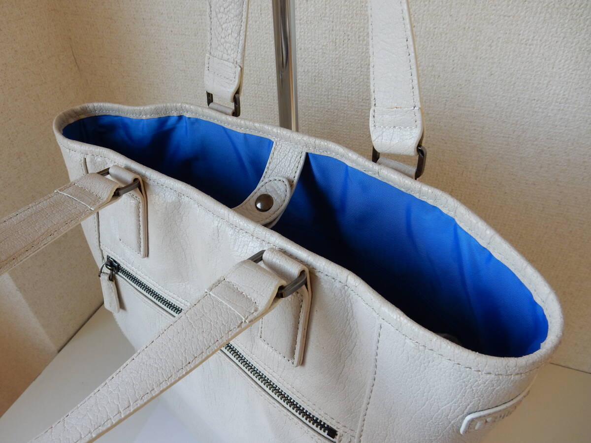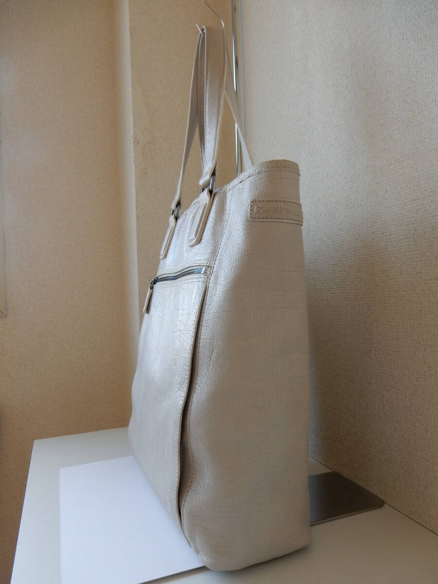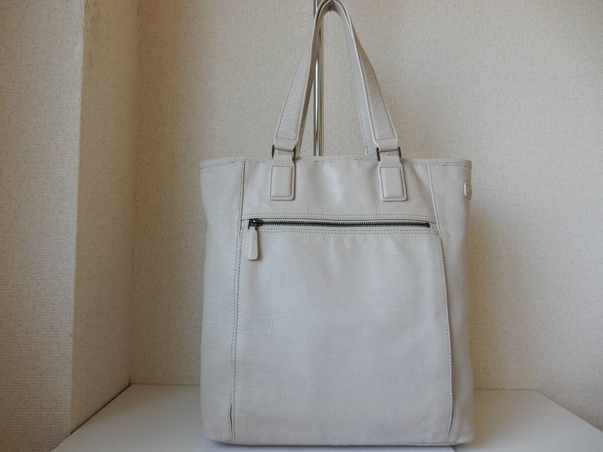 本革☆HIDEO WAKAMATSU(ヒデオ ワカマツ)☆A4対応☆肩掛けOK☆レザートートバッグ アイボリー(金具シルバー)