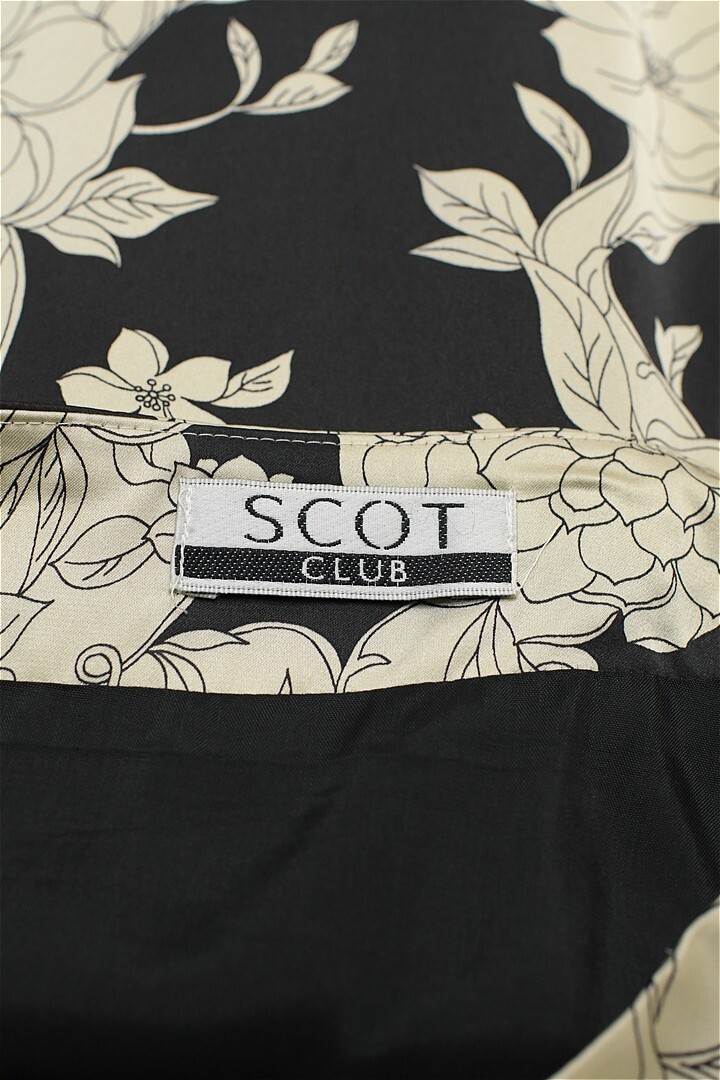 W148/美品 SCOT CLUB スコットクラブ フィッシュテールスカート ティアードフレアスカート ひざ丈 総柄 光沢 9 M ベージュゴールド