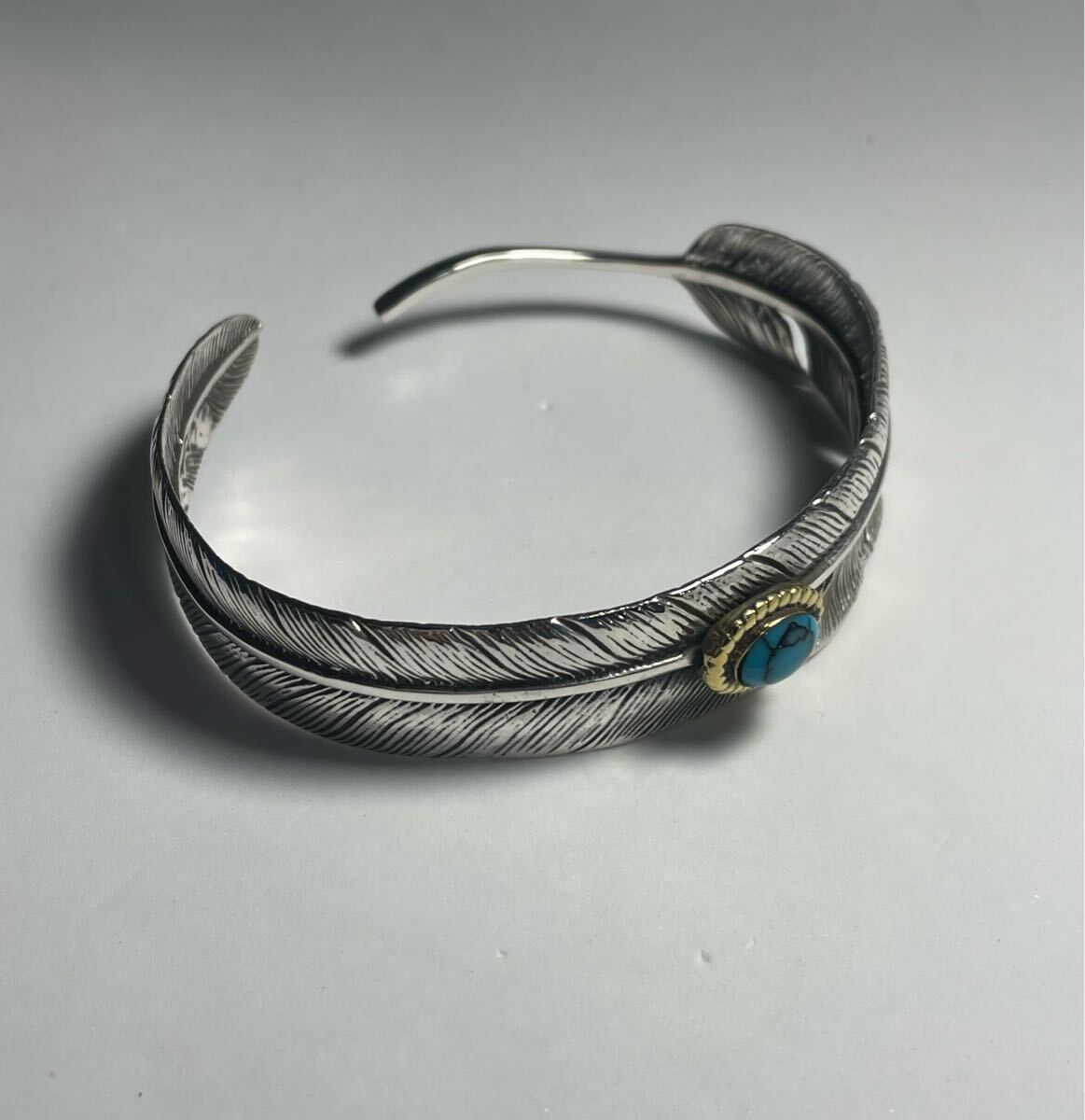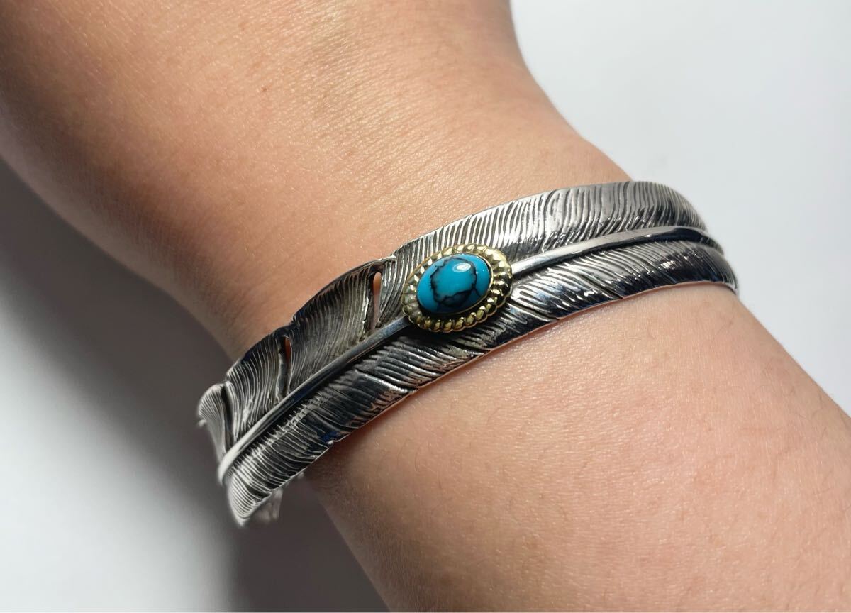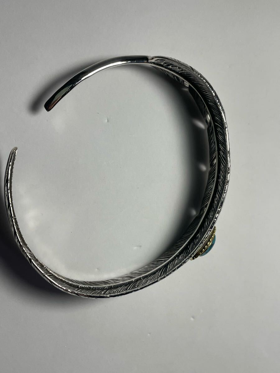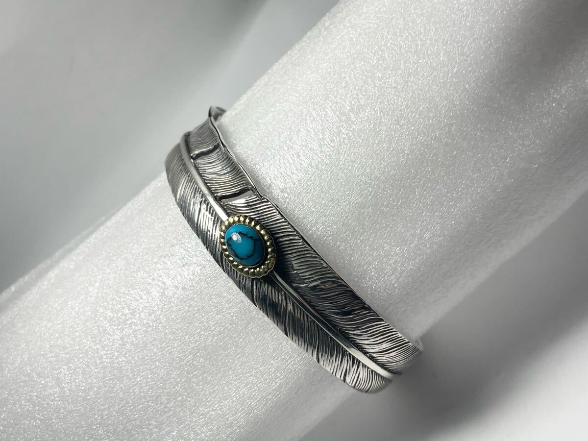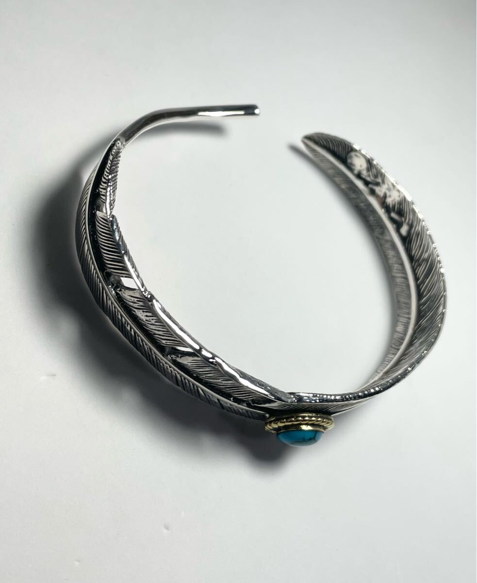 バングル シルバーリング 純銀 ターコイズ フェザー