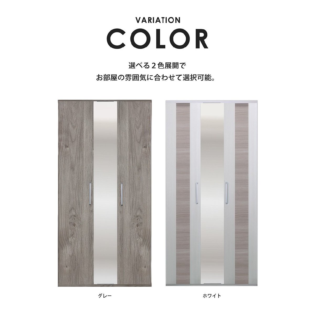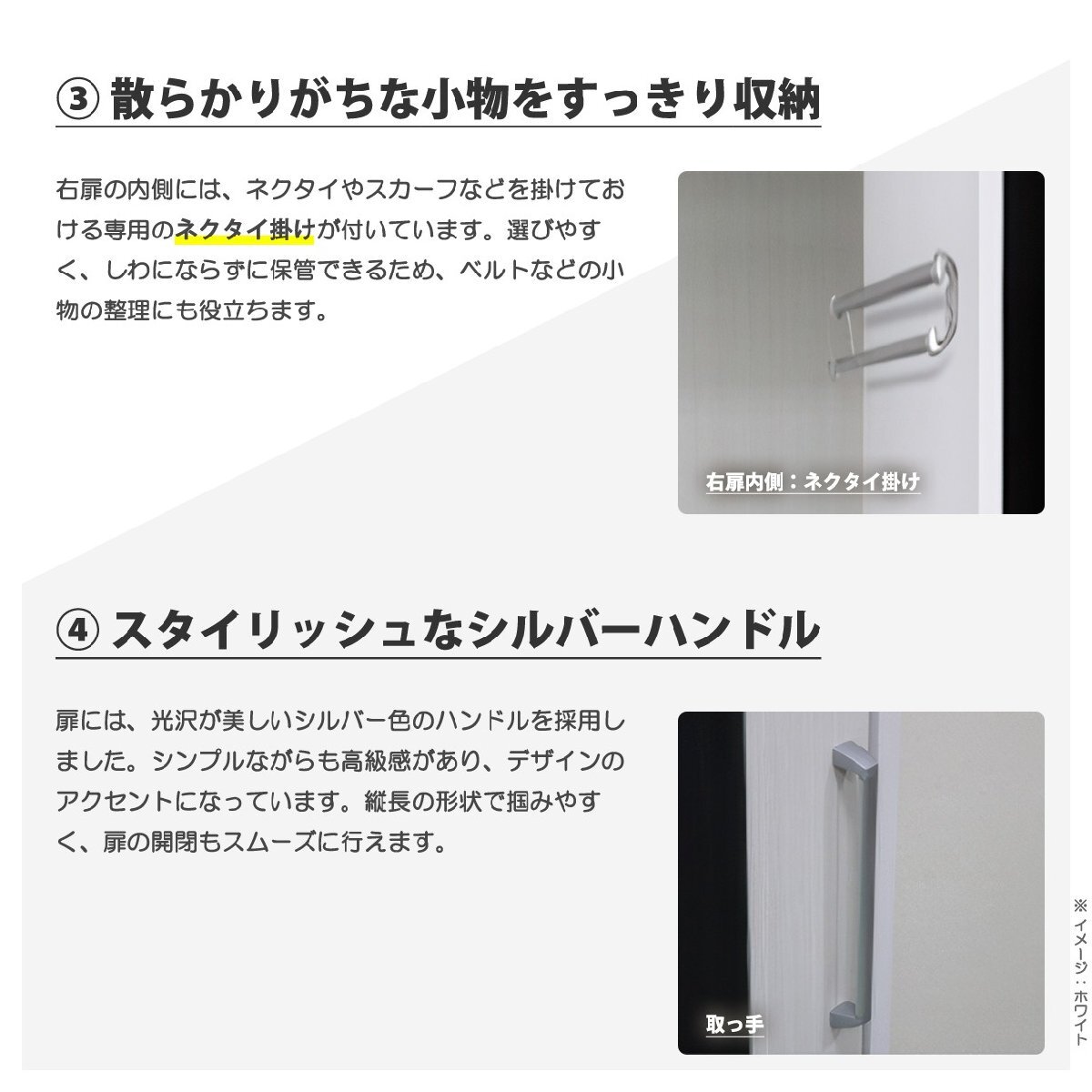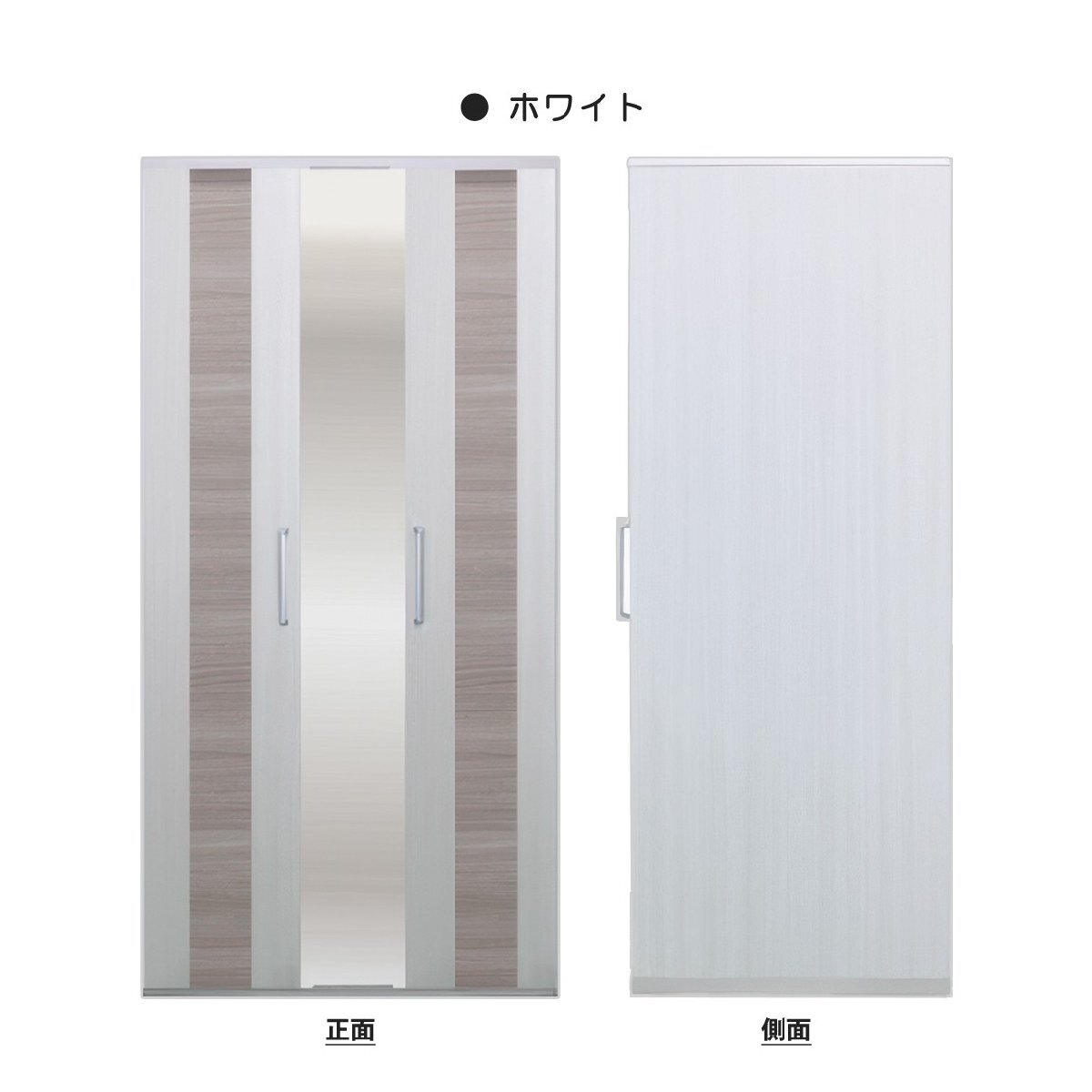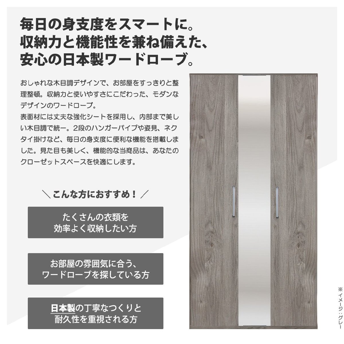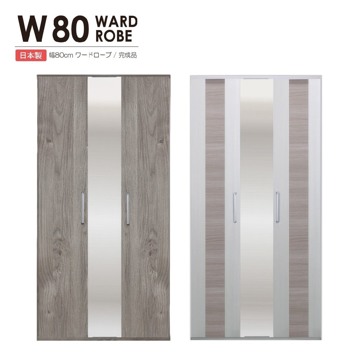 ワードローブ 幅80 完成品 日本製 鏡付き 姿見 2段吊り 高さ調整 ネクタイ掛け おしゃれ 木目調 ホワイト