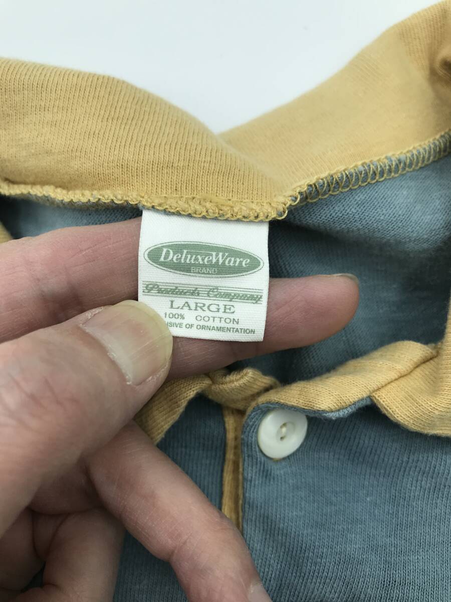 【日本製】Deluxeware半袖デラックスウエアポロシャツ/マスタード×ブルーグレー/L /リアルマッコイ フリーホイラーズ