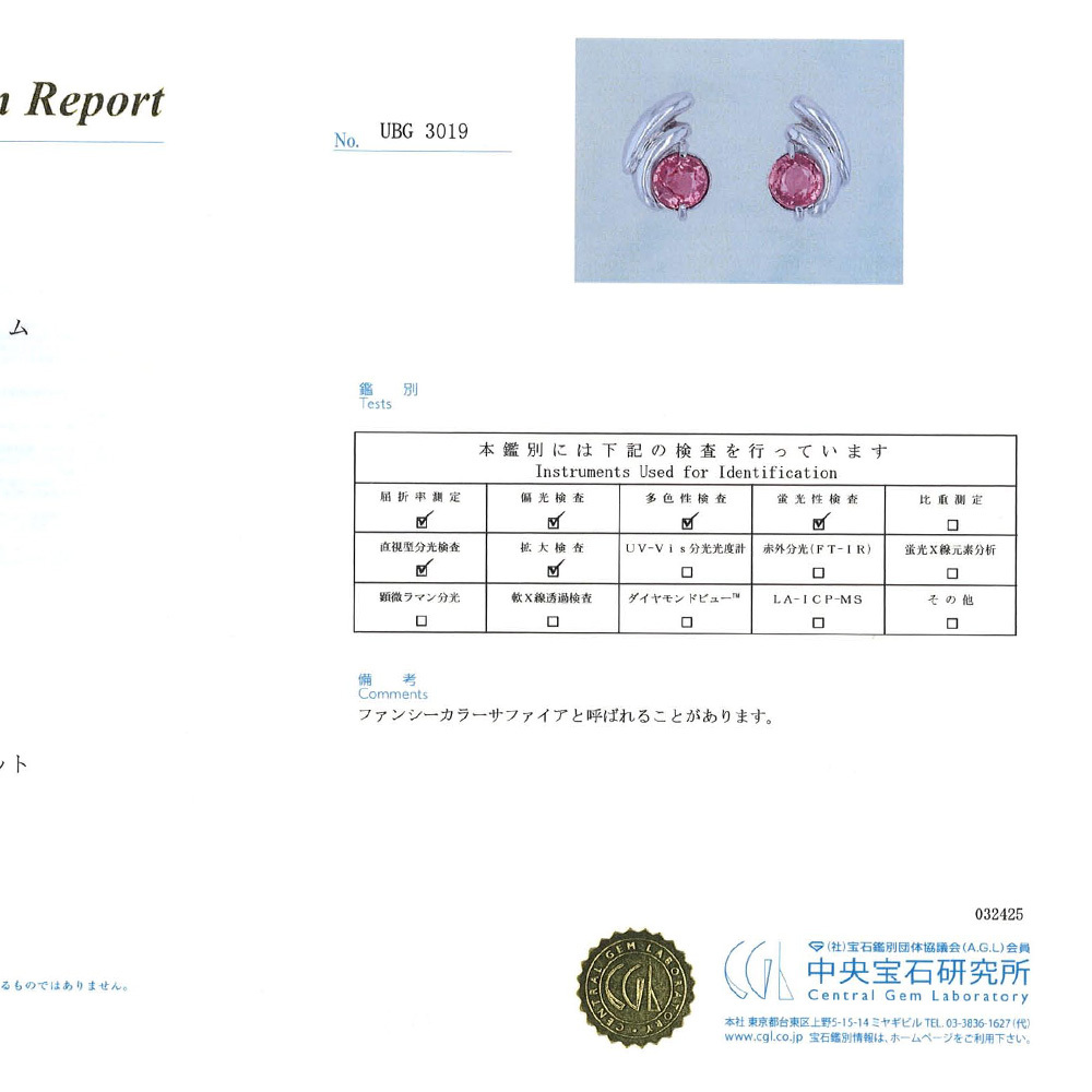 ● 付属品:鑑別書(天然コランダム、サファイア、中央宝石研究所)のみ