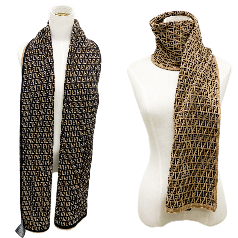 | FENDI フェンディ FXS124 マフラー ベージュ ブラック 中古B【辻屋質店A3366】 | |