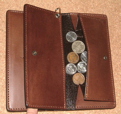 ・開いて右側に「札入れ」「カードスロットル」「小銭入れ(ボタン開閉)」が、