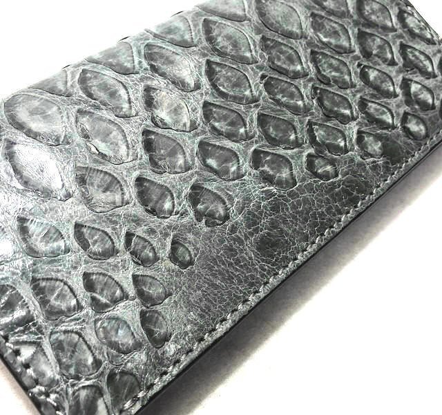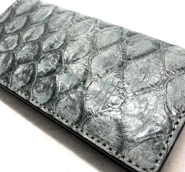 色は人気の「グレー(艶有り)」、鱗による凹凸と光沢のある独特の素材感はとても表情が良く、使い込むごとに艶が現れ風合いが増してきます!