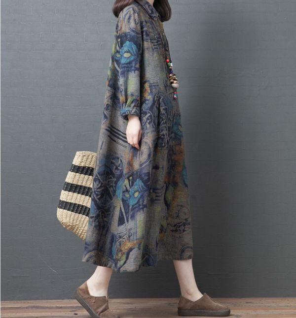 レディース ワンピース ラウンドネック 体型カバー カジュアル FY08