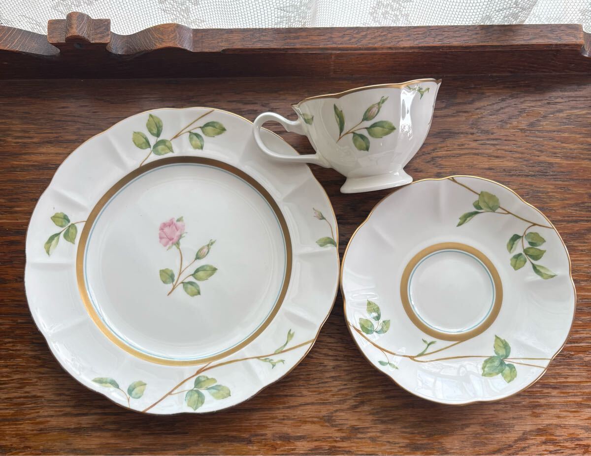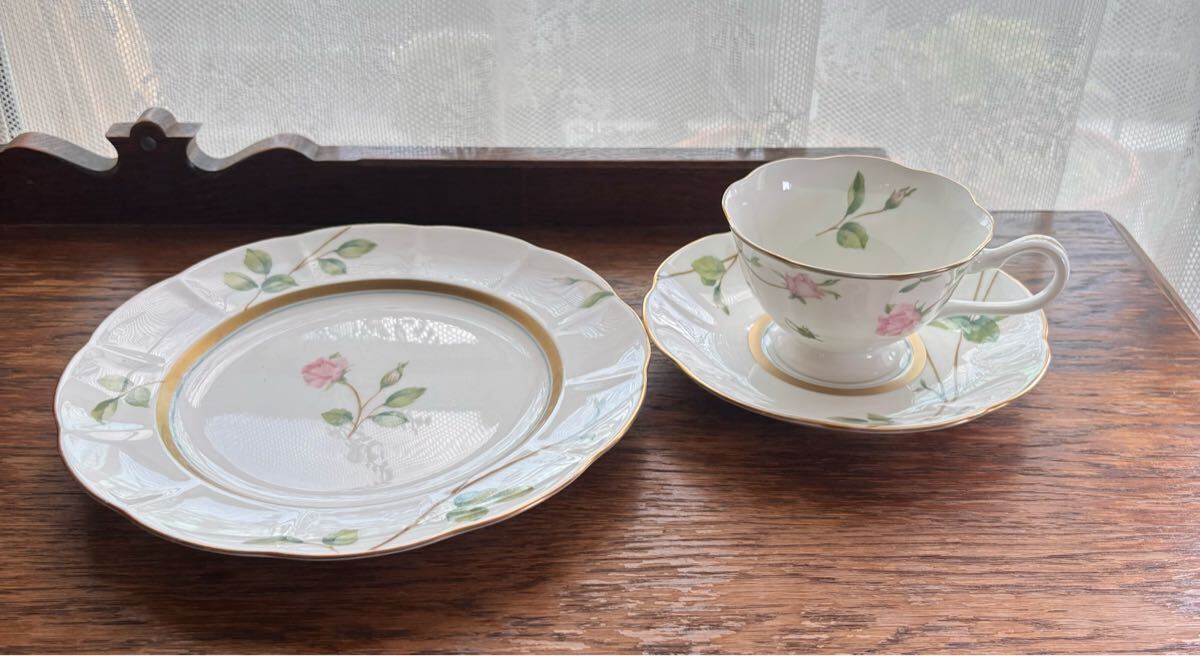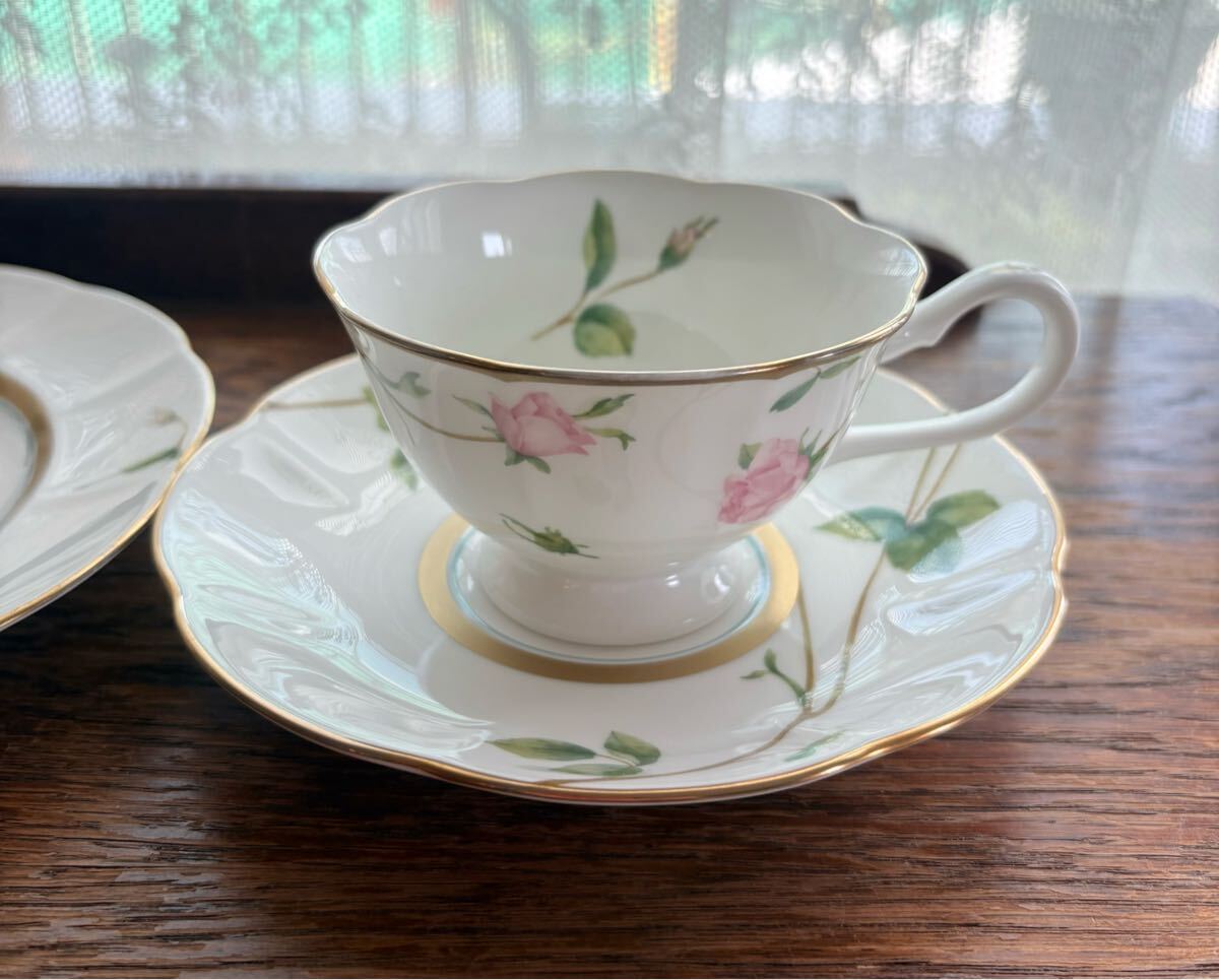 ナルミ ロージーレーン トリオ USED カップ&ソーサー ケーキ皿 バラの花の絵柄 ティーカップ&ソーサー ケーキ皿 NARUMI 廃盤品