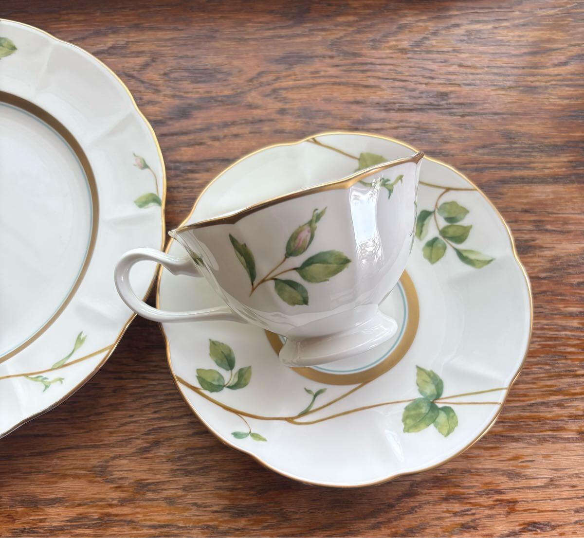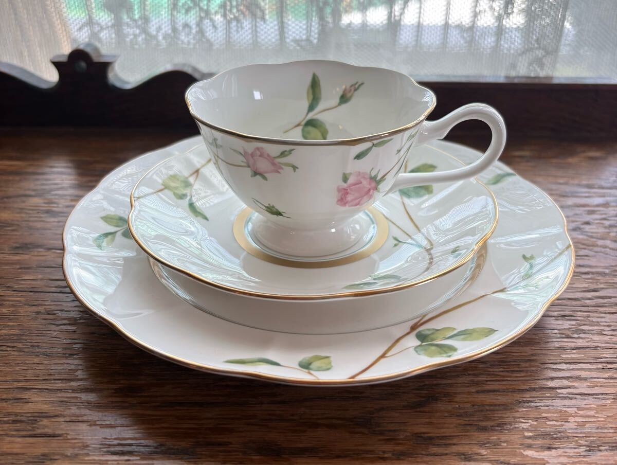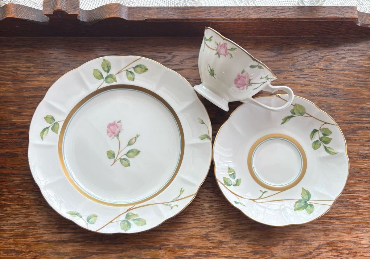 ナルミ ロージーレーン トリオ USED カップ&ソーサー ケーキ皿 バラの花の絵柄 ティーカップ&ソーサー ケーキ皿 NARUMI 廃盤品