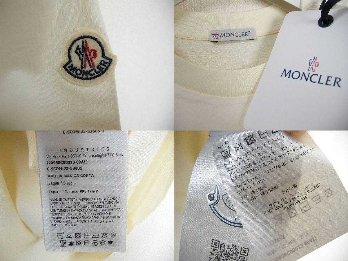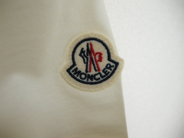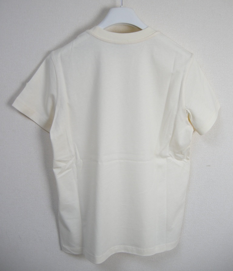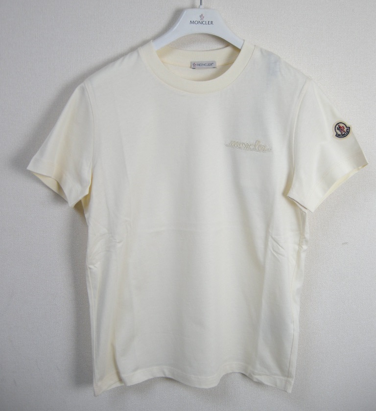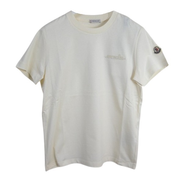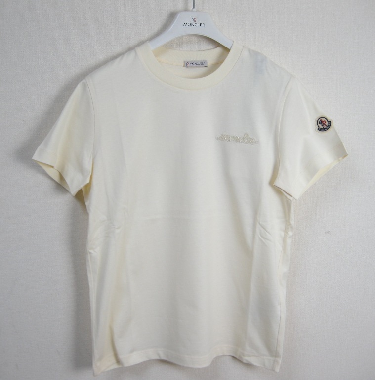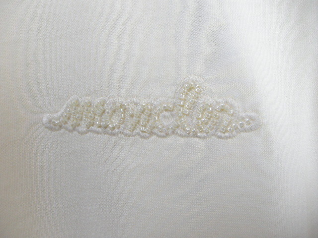 サイズS(ゆったりめ)新品 本物■モンクレールMAGLIA GIROCOLLOビーズロゴ付きTシャツTEEカットソー/半袖Tシャツ/レディースMONCLERホワイト