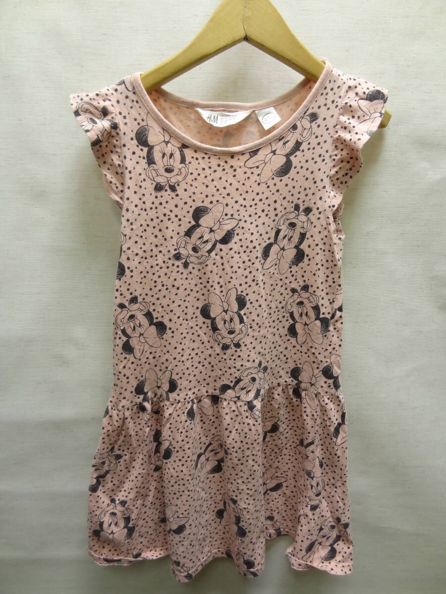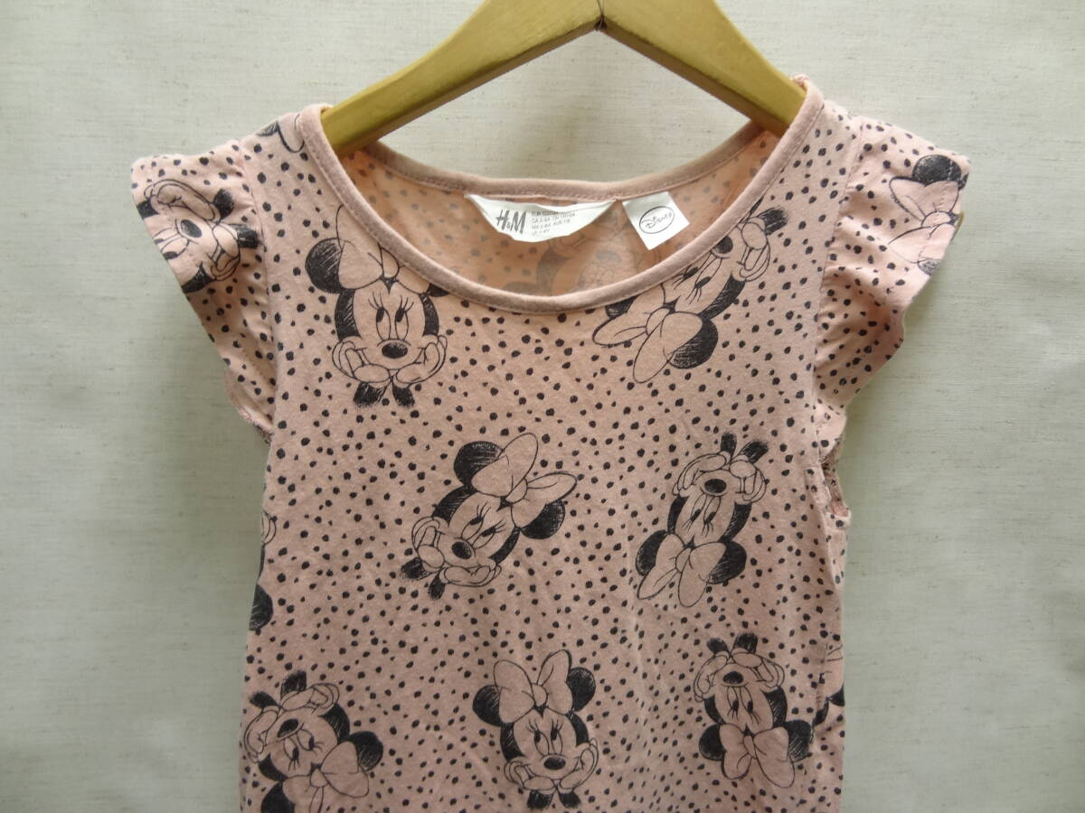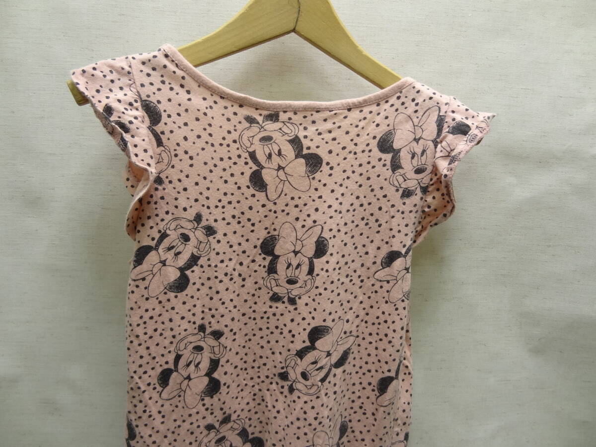 全国送料無料 エイチアンドエム H&M Xミニーマウス 子供服キッズ女の子 肩フリルスリーブ カットソー素材 ワンピース 130