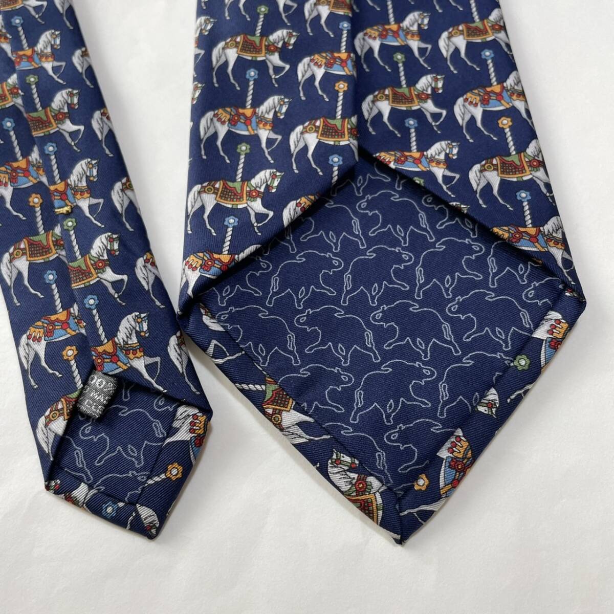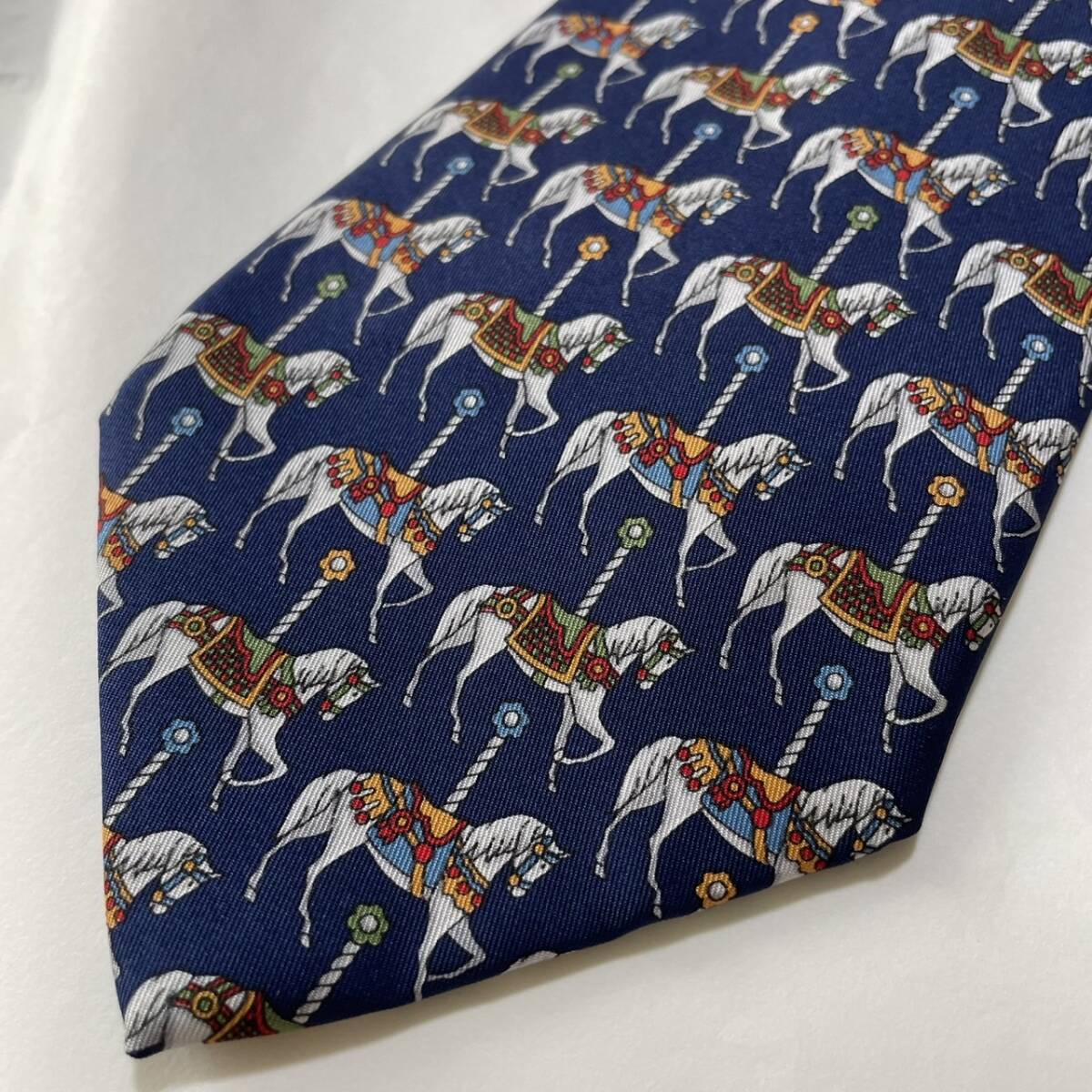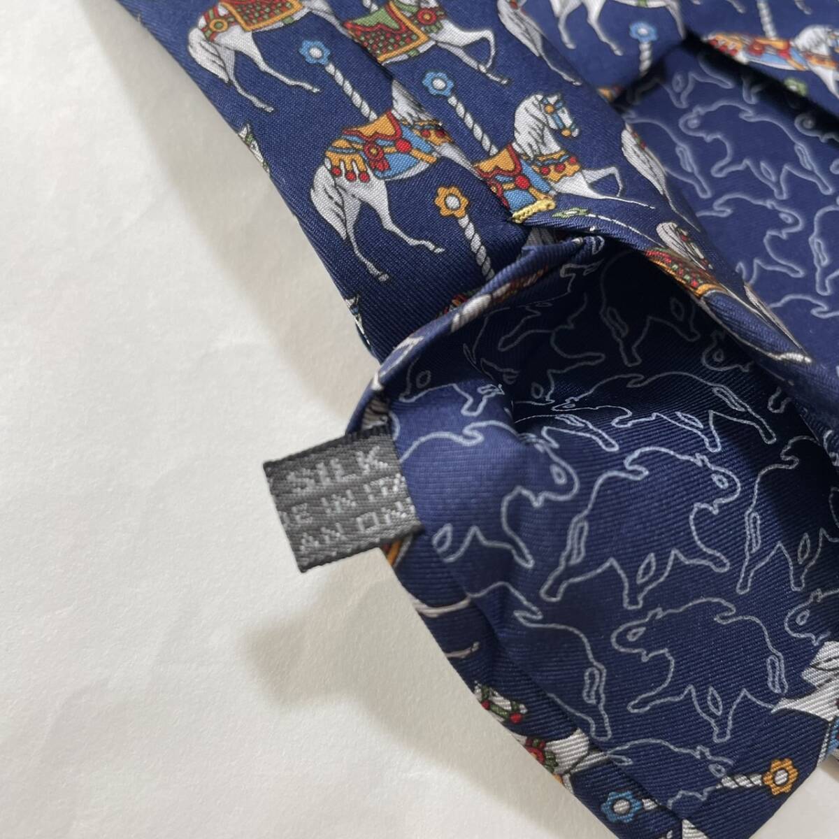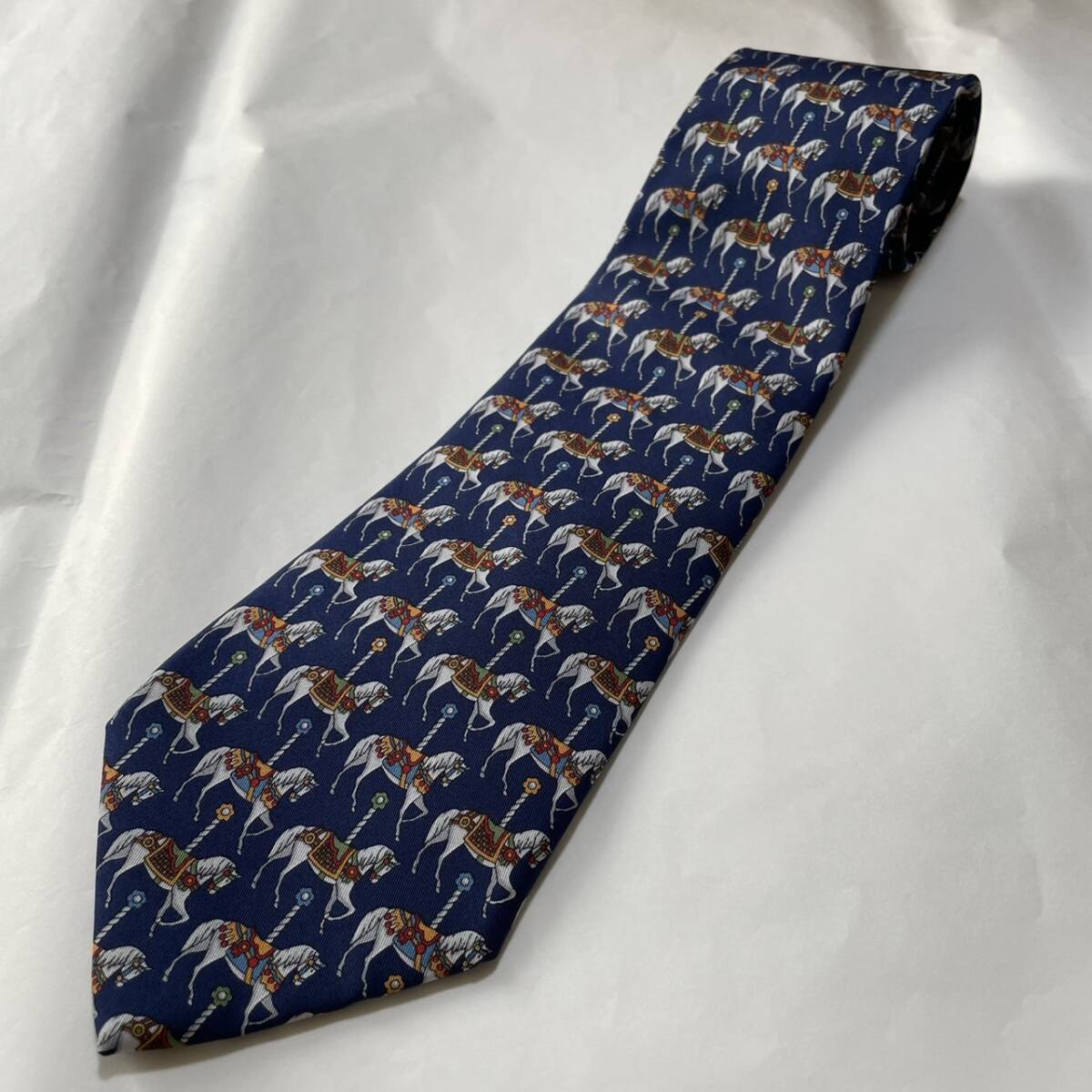 ハンティングワールド 濃紺 ネイビー シルク ネクタイ イタリア製 美品